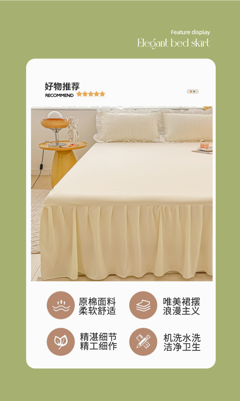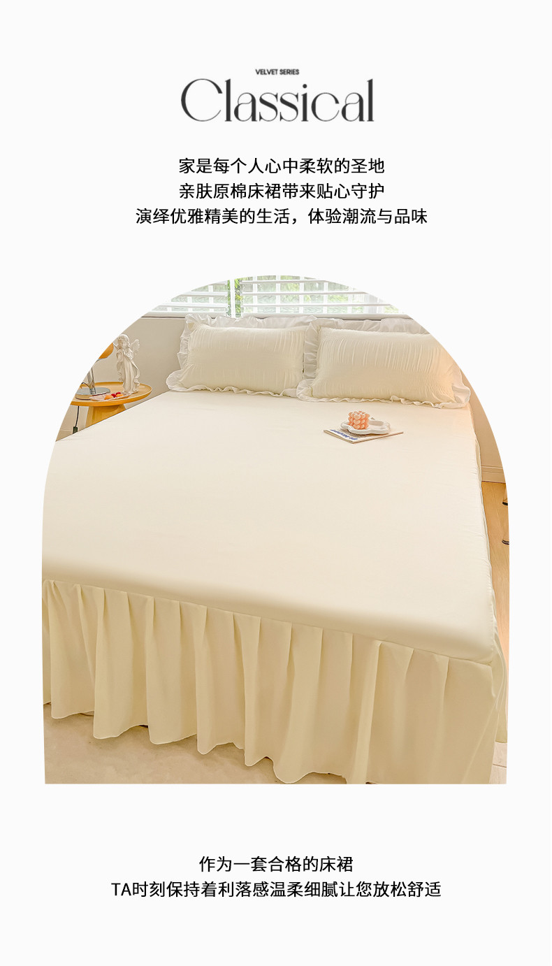 笠裙 2024新款亲肤磨毛单床裙直播供货 原棉110克 奶昔白