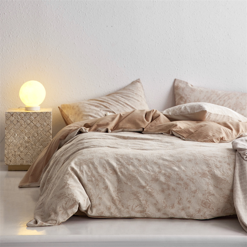 (总)简家居 2025新款亲肤舒适棉麻床盖三件套,棉麻提花