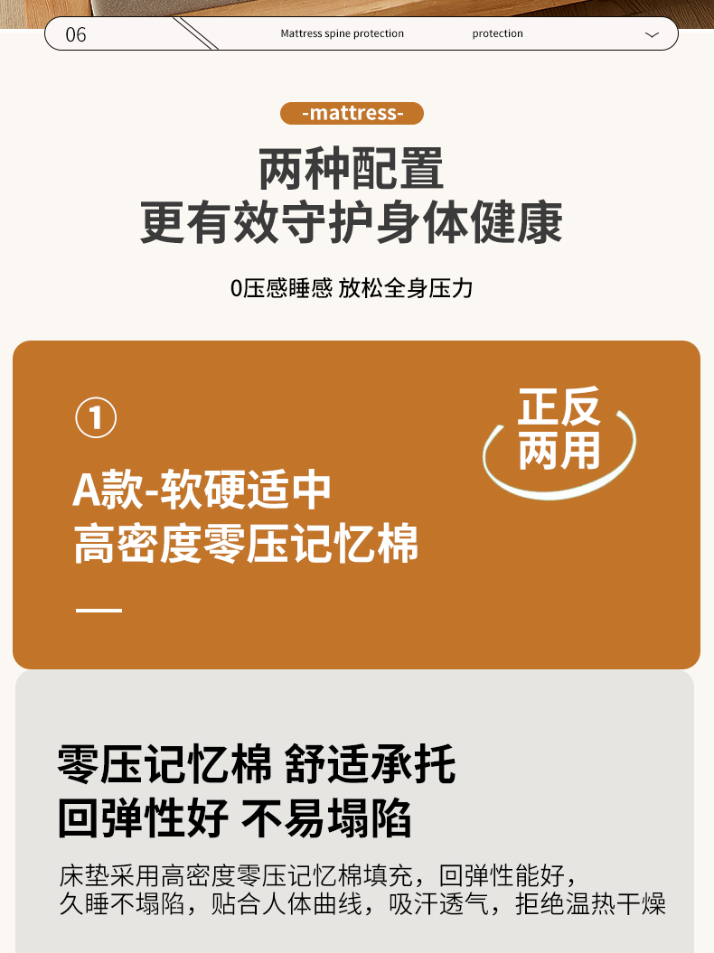 (总)时奥 2023新款零压竹炭记忆海绵床垫-风格2