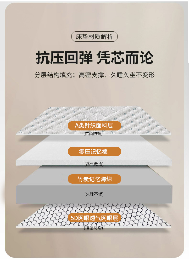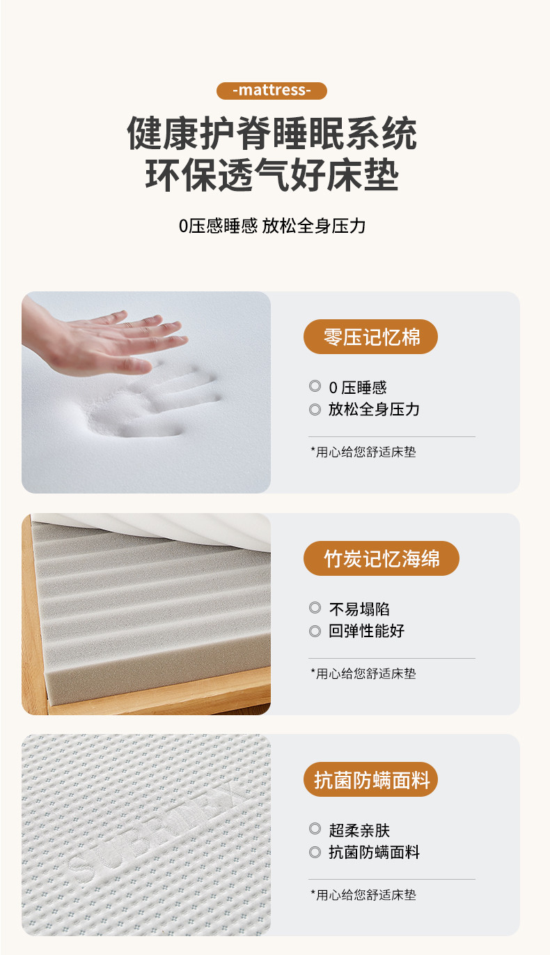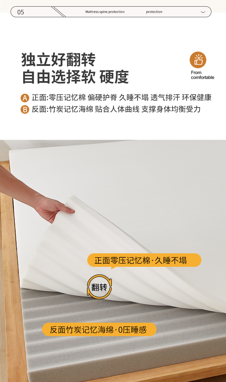 (总)时奥家纺 2023新款可拆慢回弹记忆棉竹炭海绵床垫,零压竹炭可拆卸