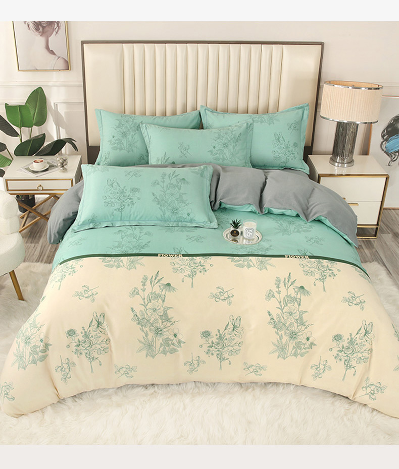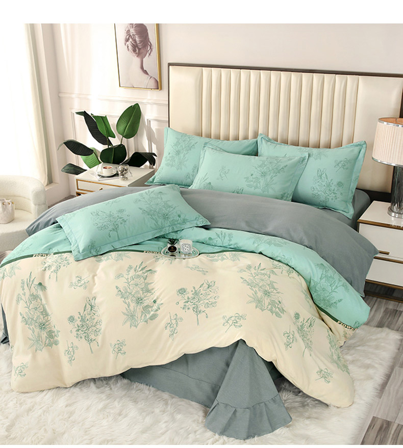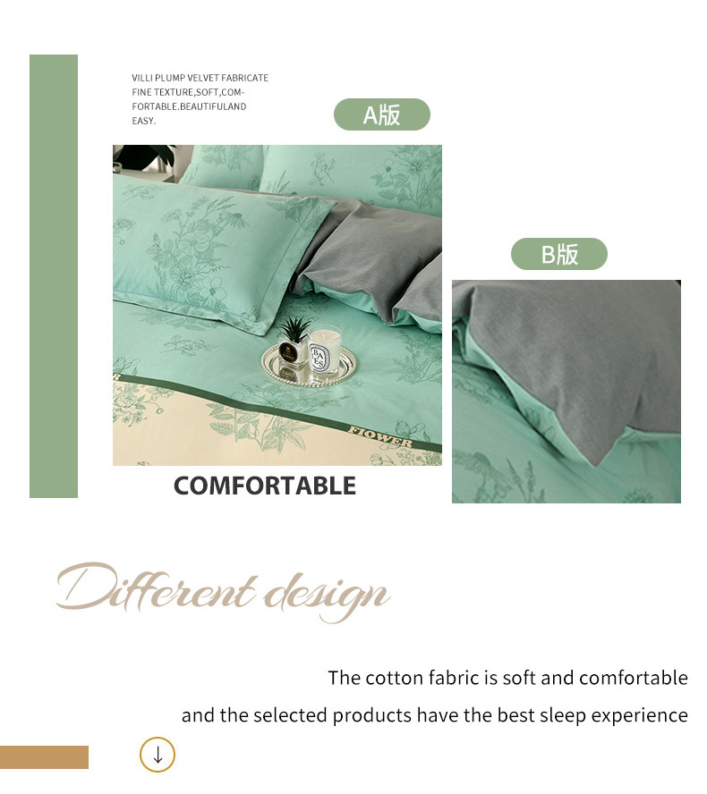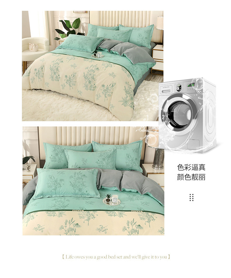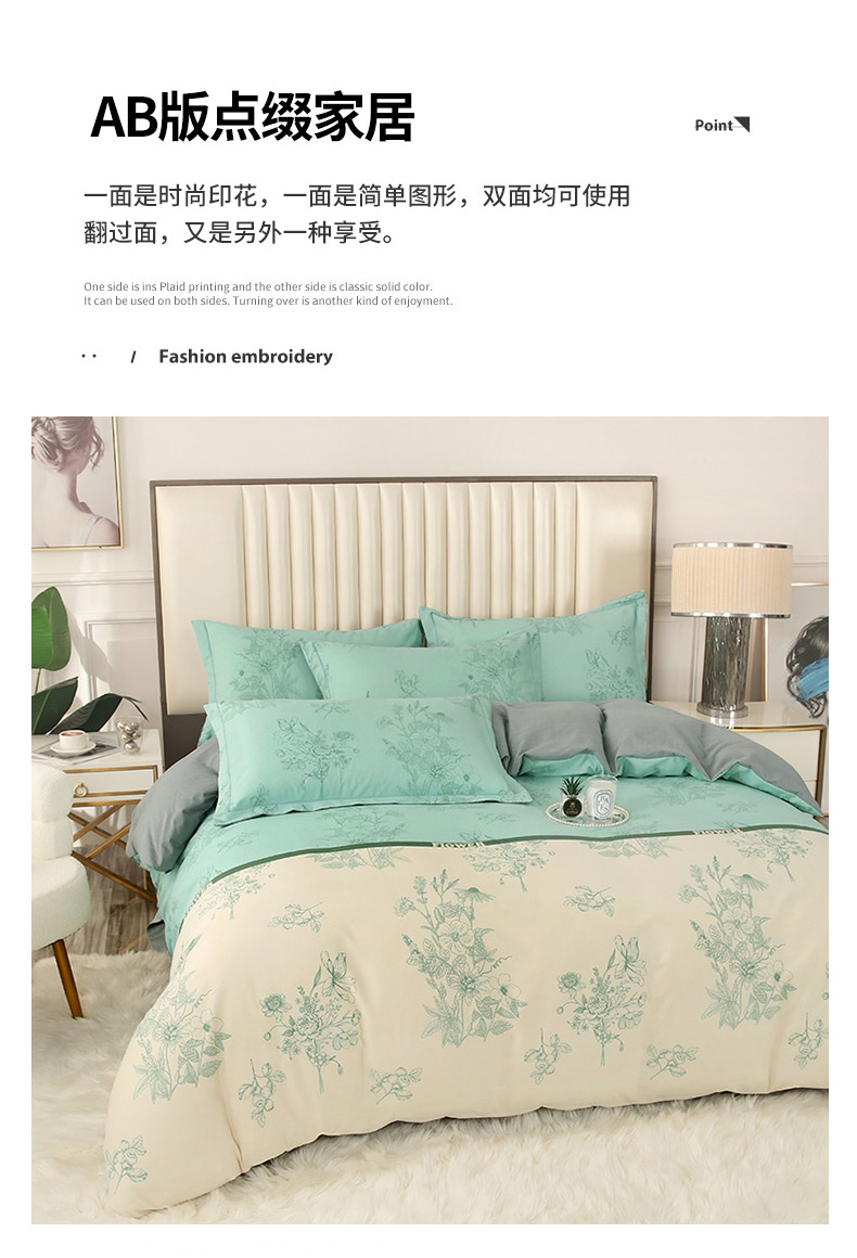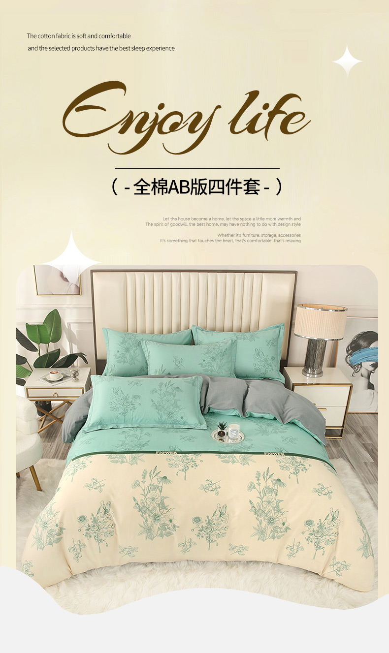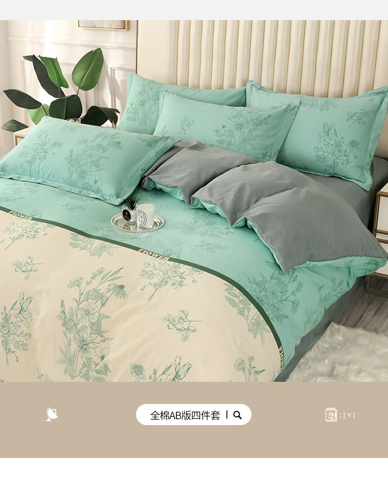 金纱玉纺家纺 2023新款纯棉加厚AB版四件套 绿风铃-绿