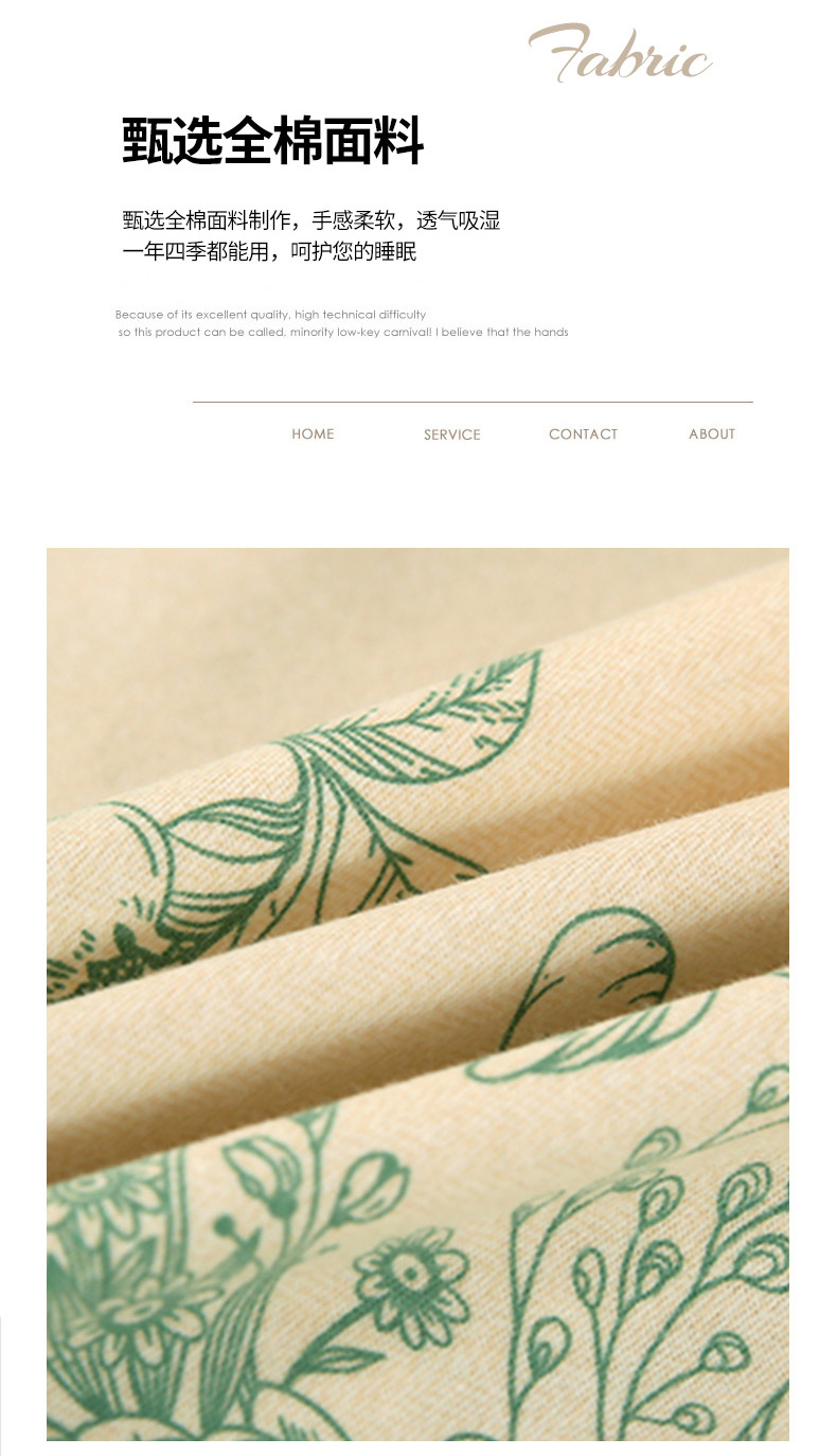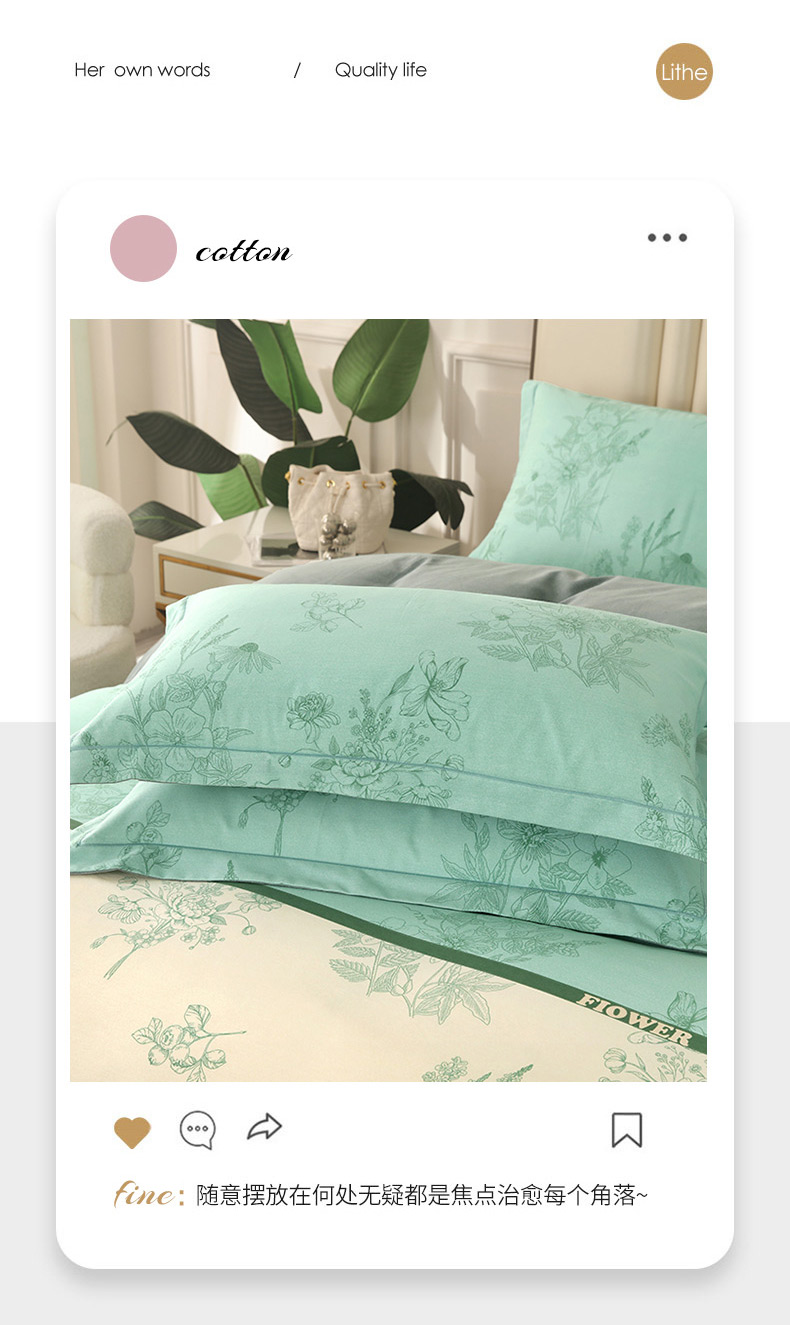 商品名称:金纱玉纺家纺 2023新款纯棉加厚AB版四件套 绿风铃-绿