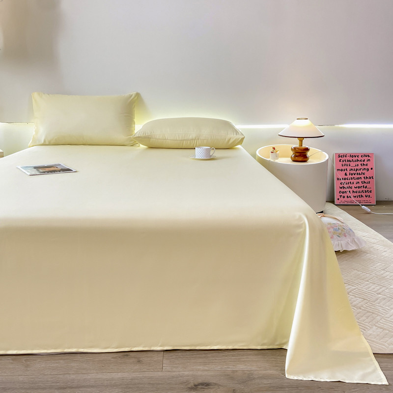 漫仙阁家纺 2023新款亲肤细砂磨毛纯色平纹床单 芝士黄
