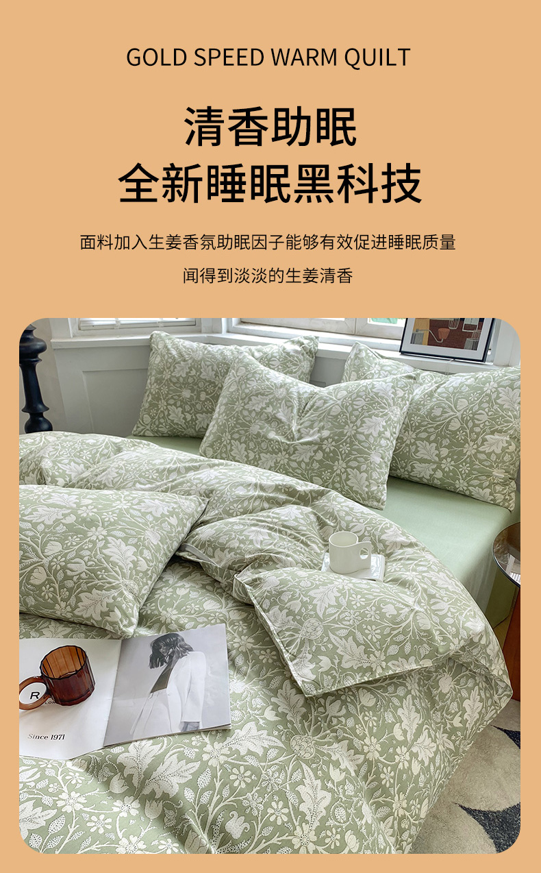 妖妖家纺 2023秋冬新品温暖冬季生姜暖绒四件套 秘密庄园