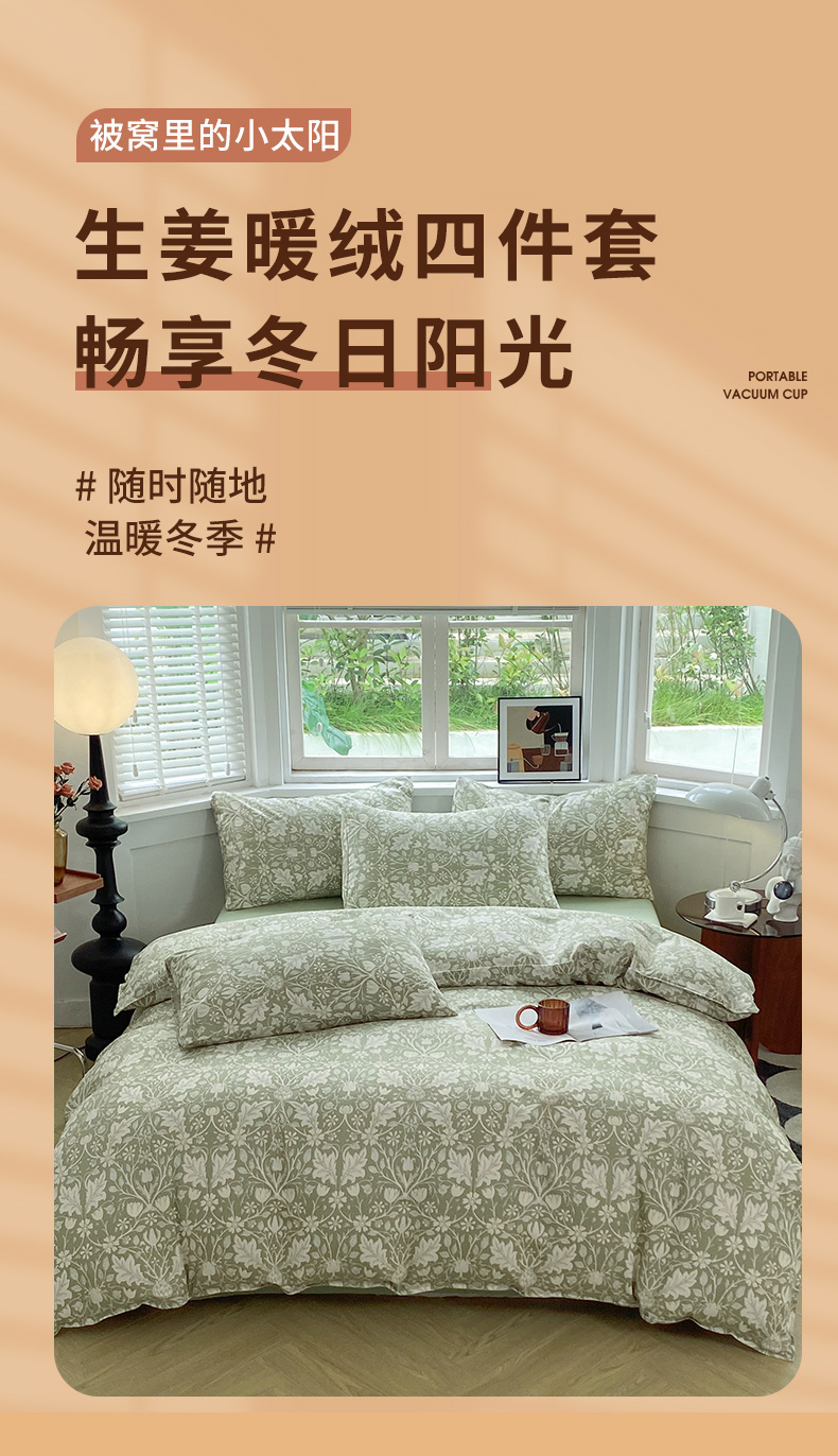 商品名称:妖妖家纺 2023秋冬新品温暖冬季生姜暖绒四件套 秘密庄园