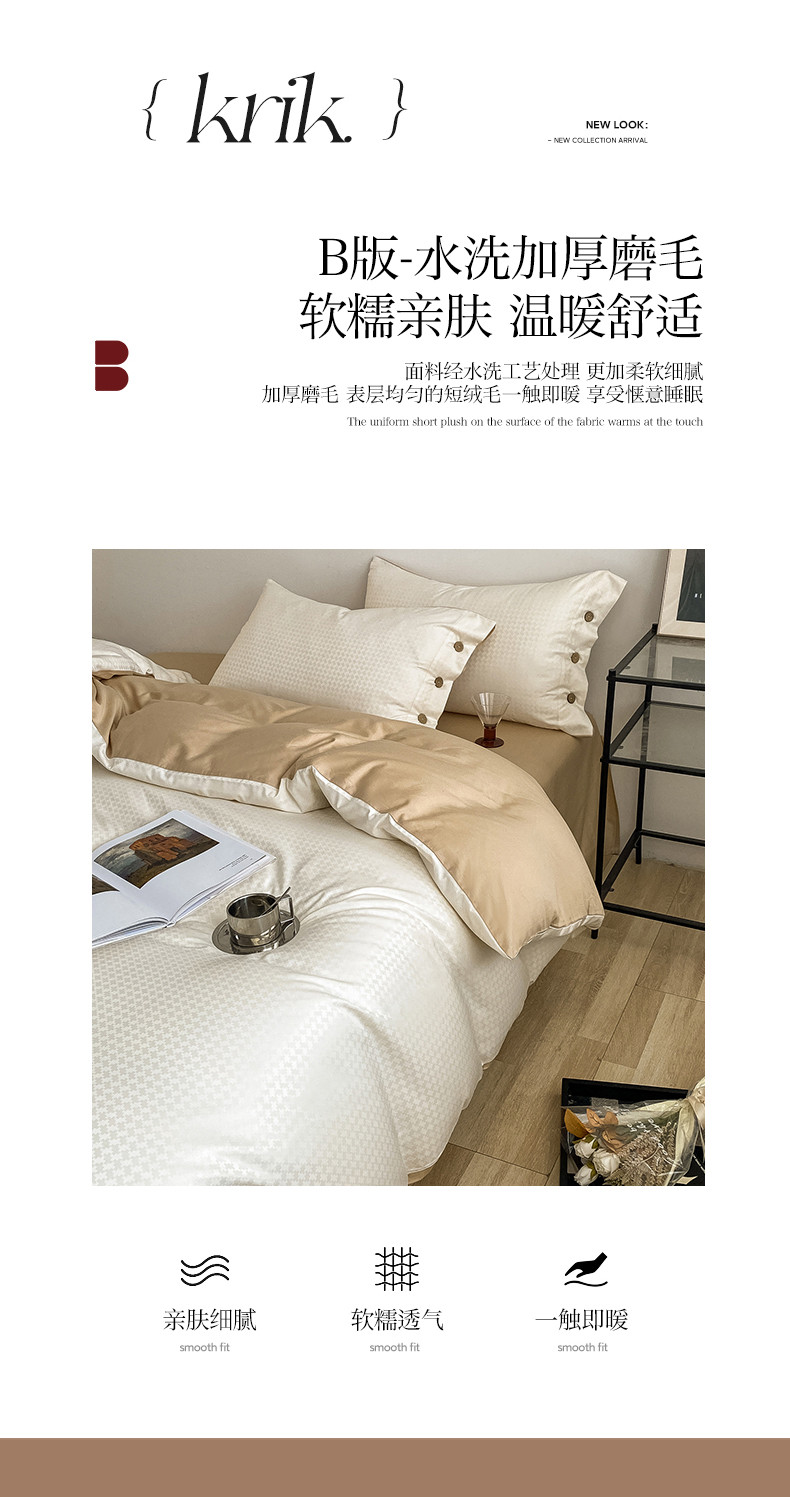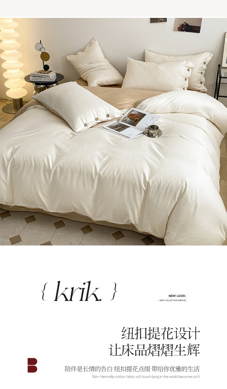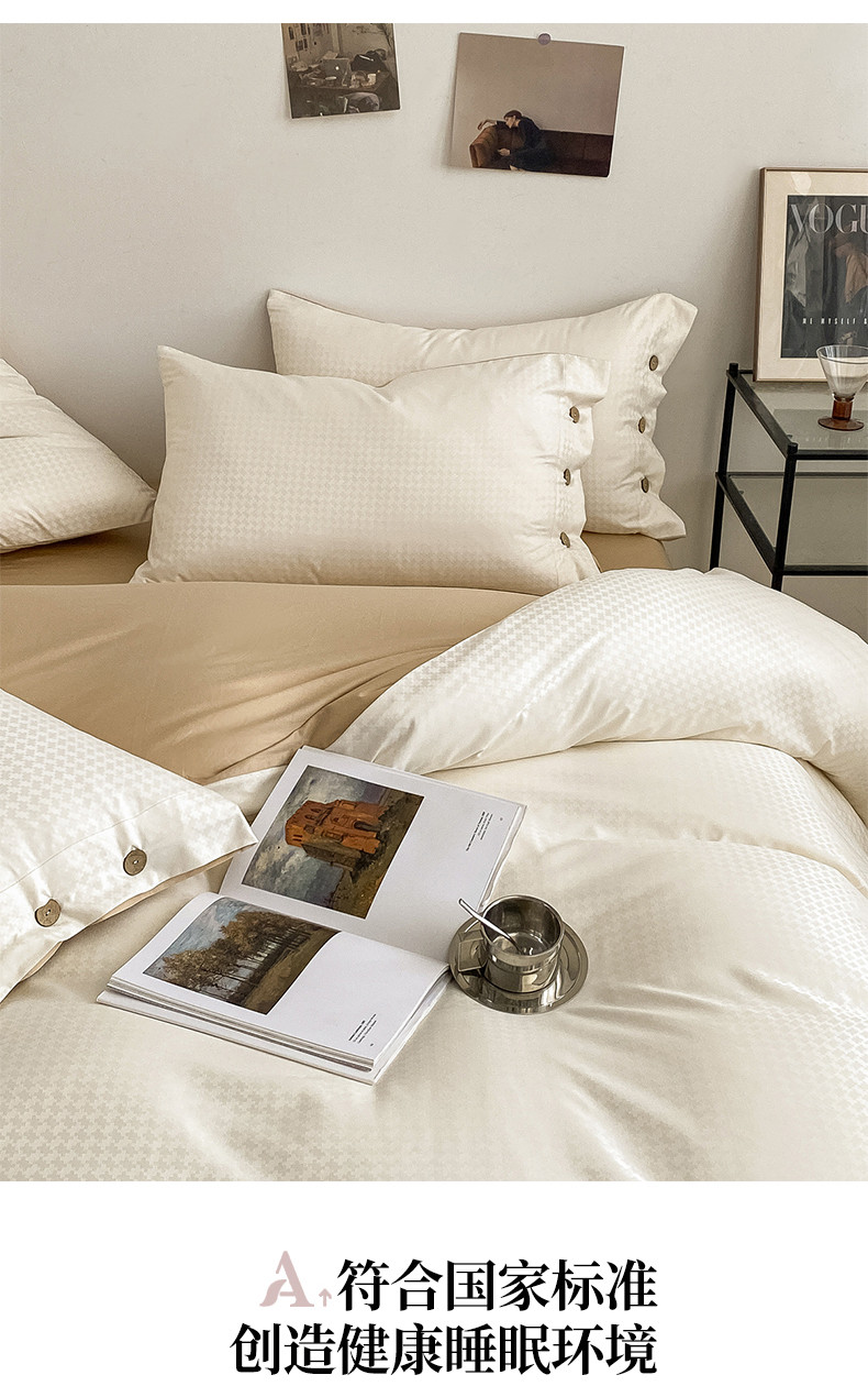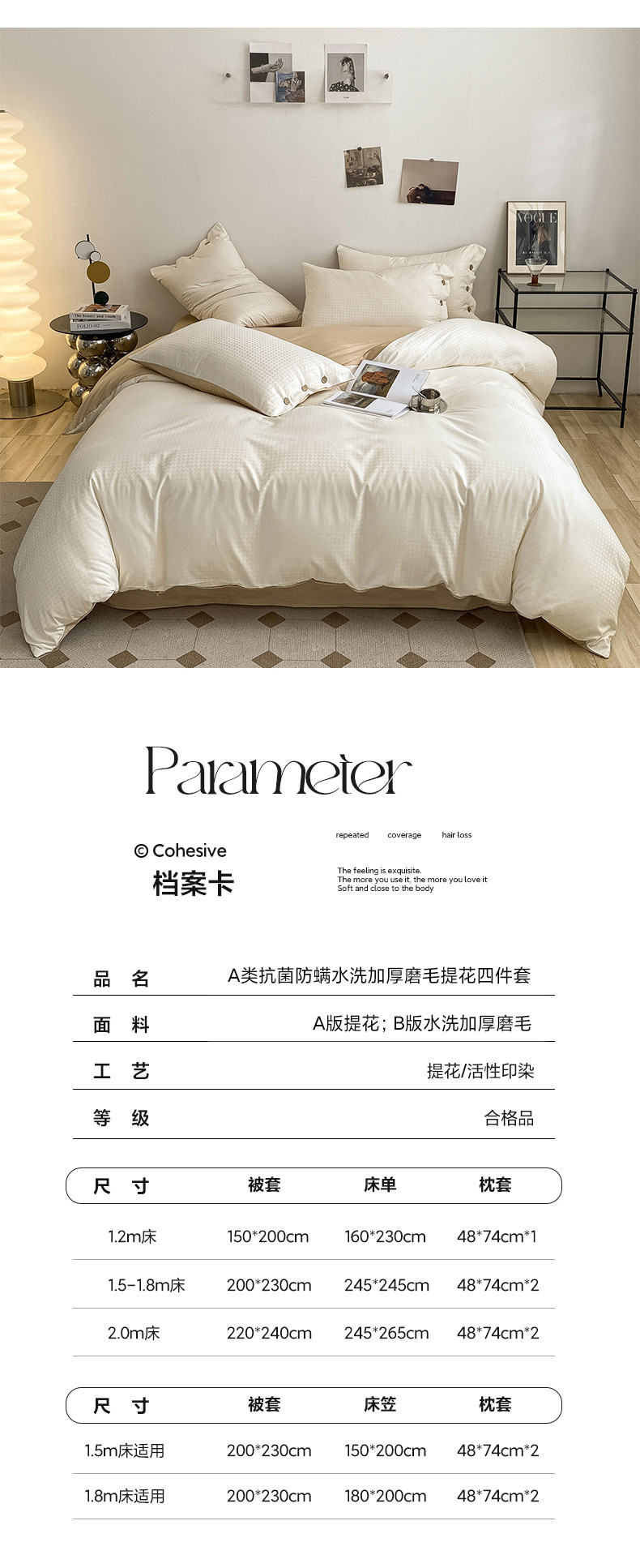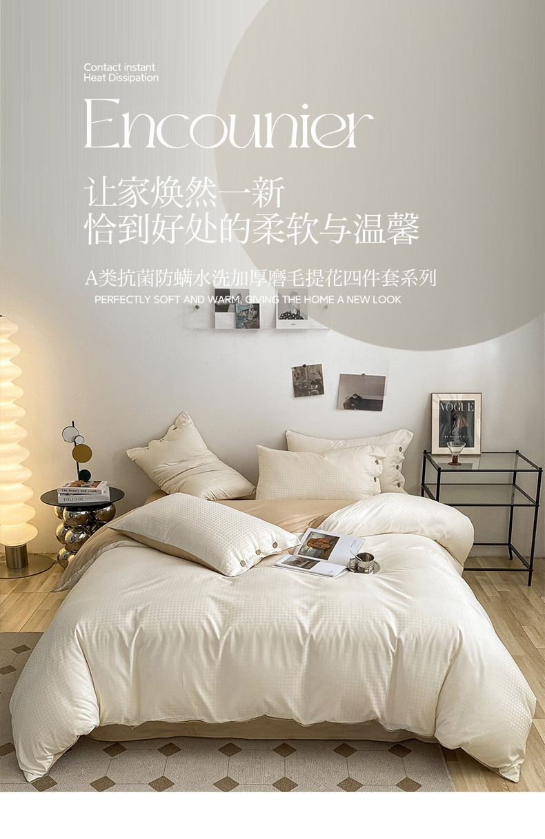 商品名称:古吉梦 2023新款A类抗菌防螨纽扣提花四件套磨毛秋冬款 奶昔白+香槟金