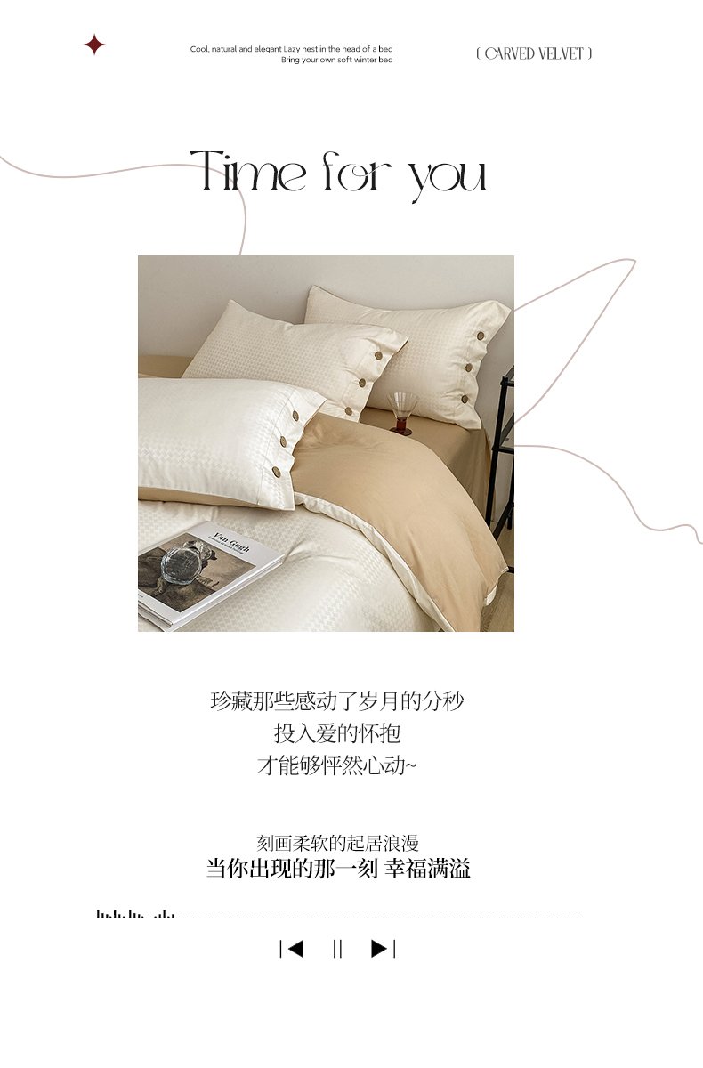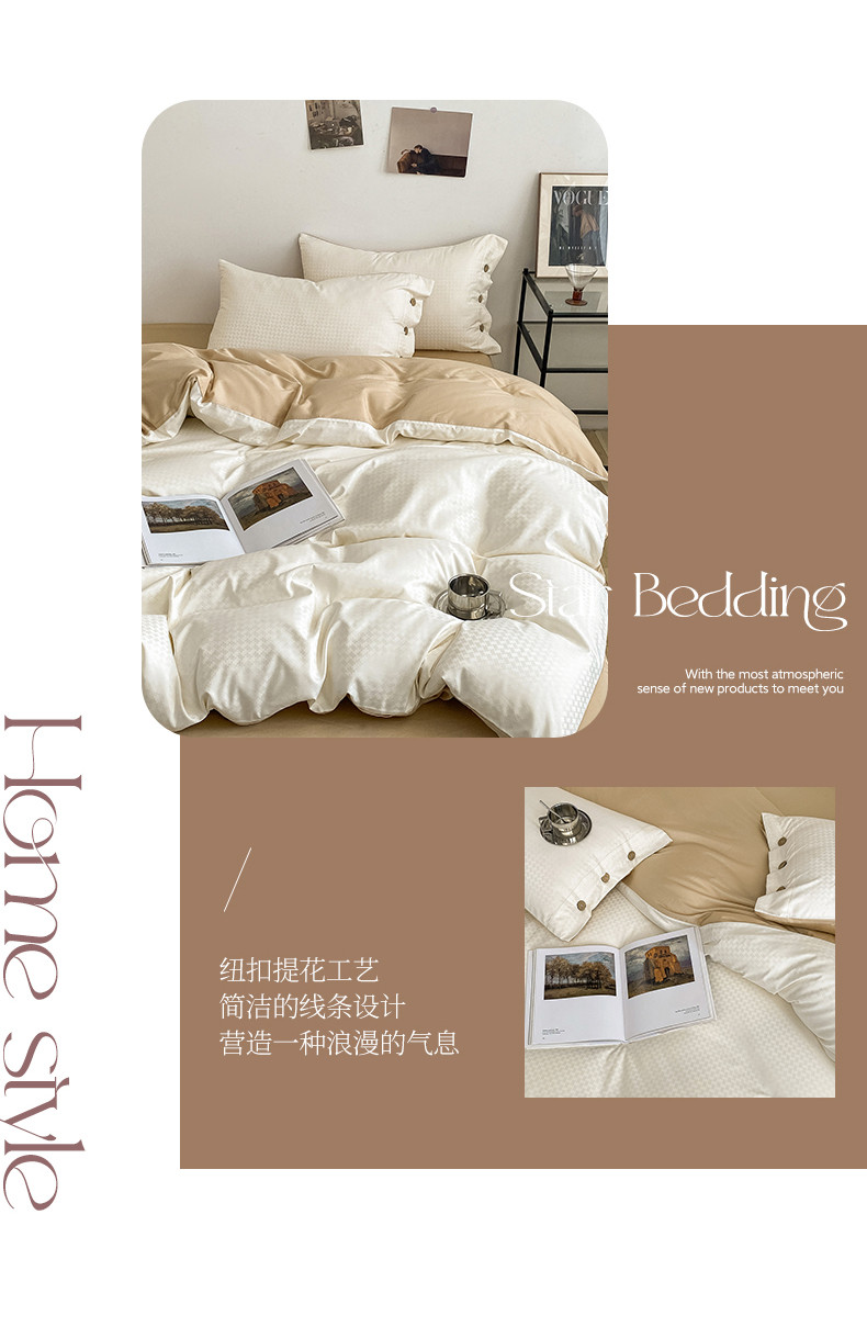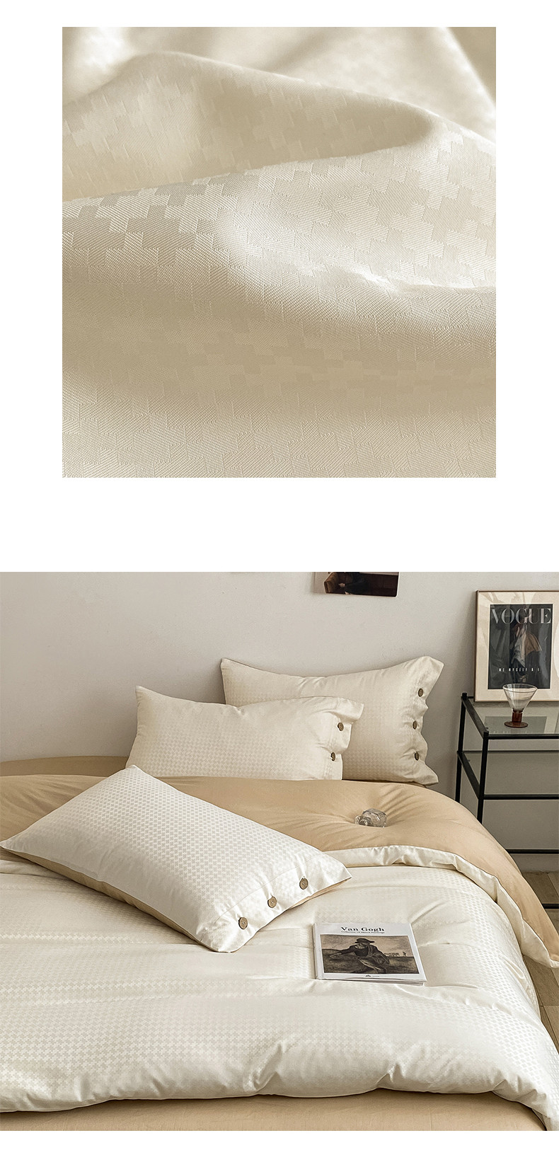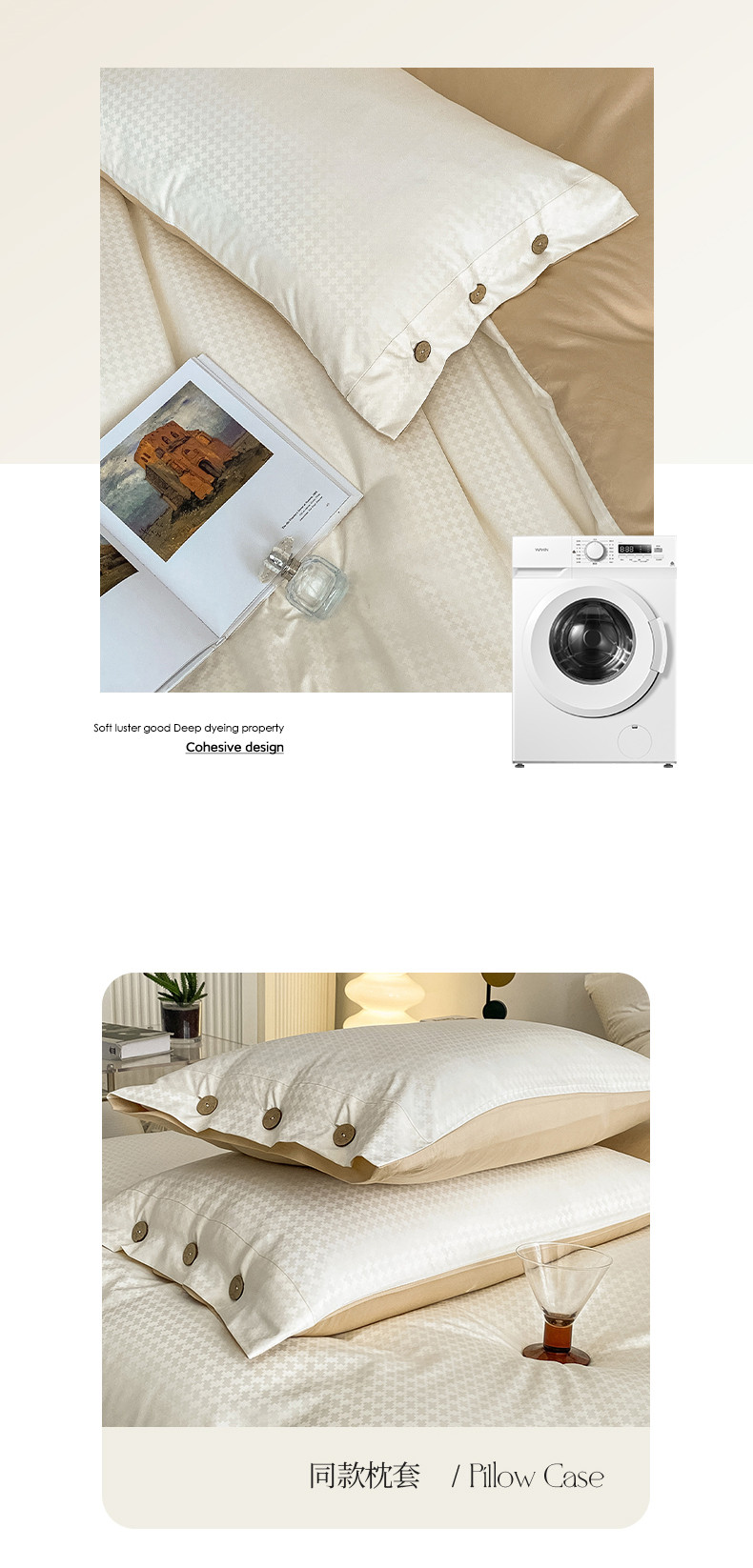 商品名称:古吉梦 2023新款A类抗菌防螨纽扣提花四件套磨毛秋冬款 奶昔白+香槟金