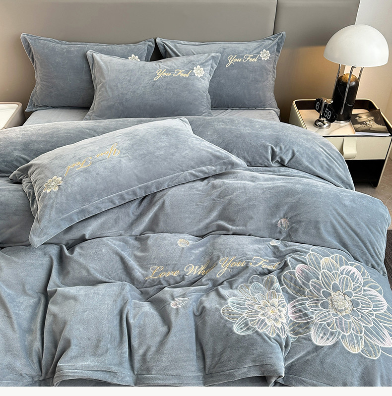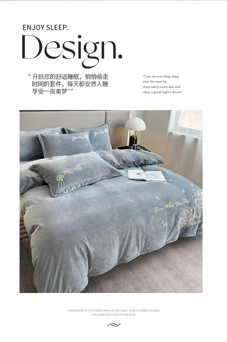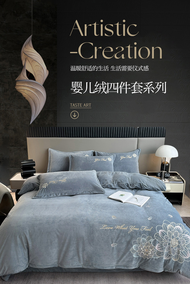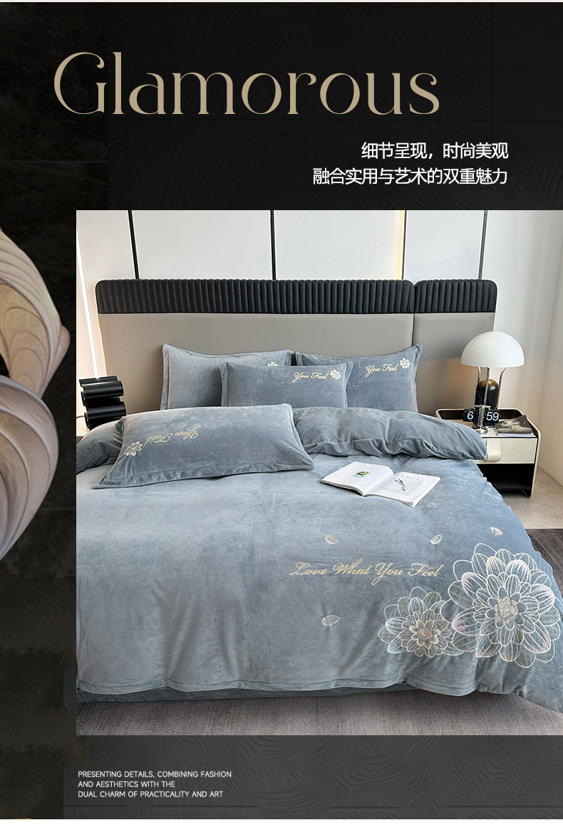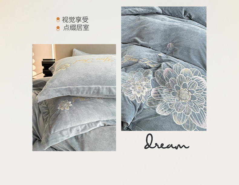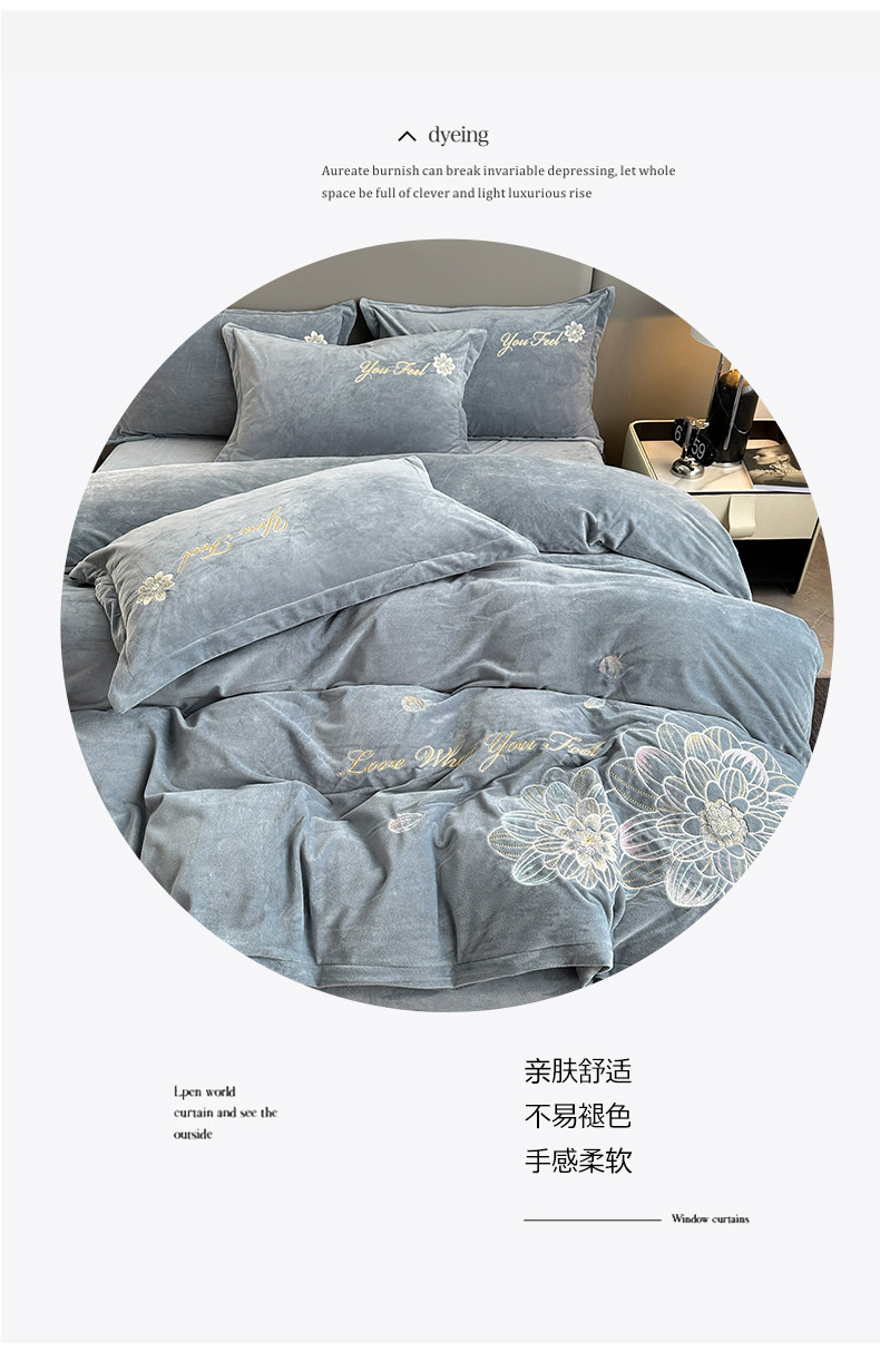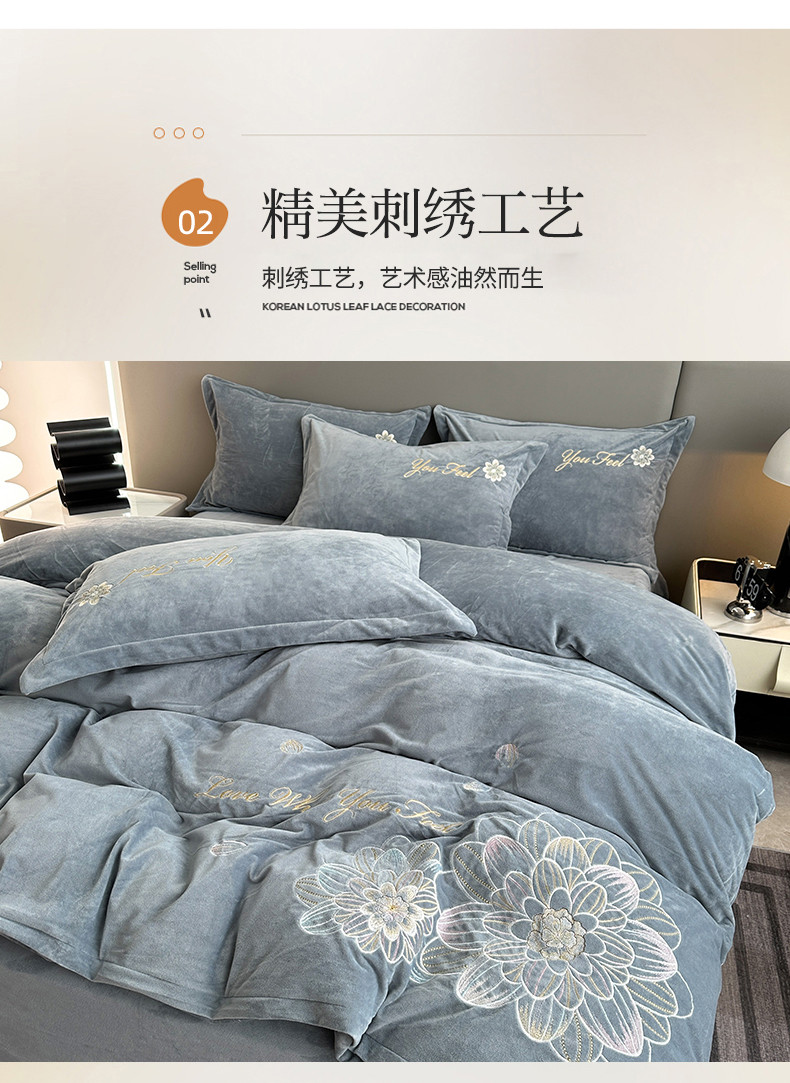 (总)逸林家纺《原希尔顿逸林》 2025新款牛奶绒绣花四件套-可可系列,可可-宾利蓝,可可-豆沙,可可-繁星蓝,可可-粉玉,可可-香芋紫,可可-雅士灰