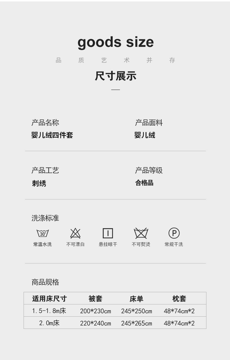 商品名称:逸林家纺《原希尔顿逸林》 2023新款宝宝绒婴儿绒四件套刺绣花小香风黛娜-高级灰