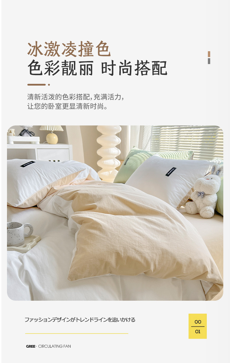 当前位置: 91家纺网 > 商品网购 > 床品套件 > 四件套 > 全棉普通四件套 > 绵庭家纺 2023新款全棉水洗棉拼色四件套 贵族白+卡其