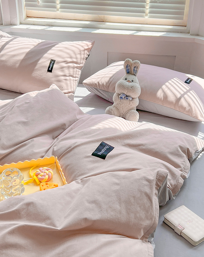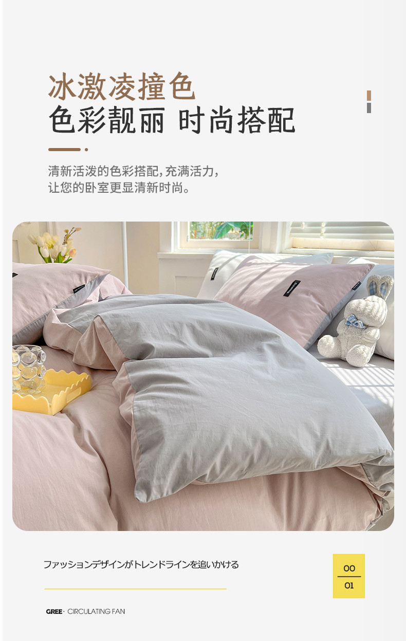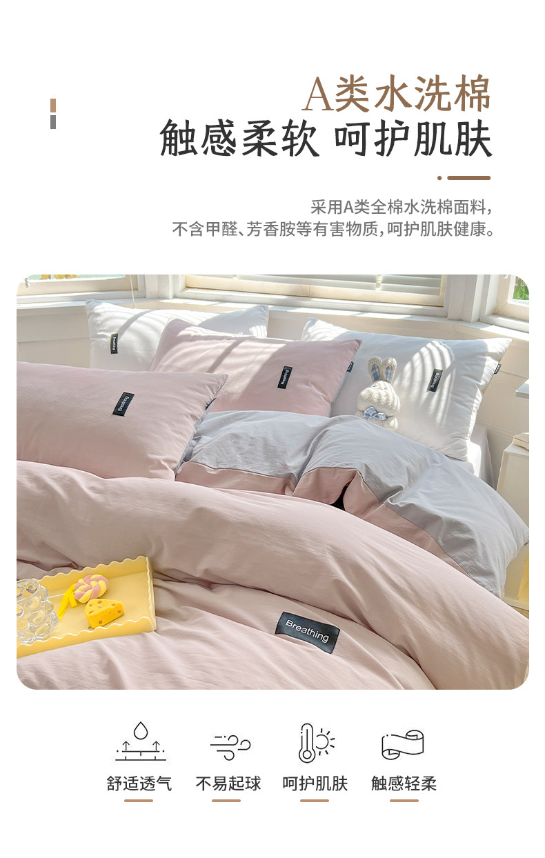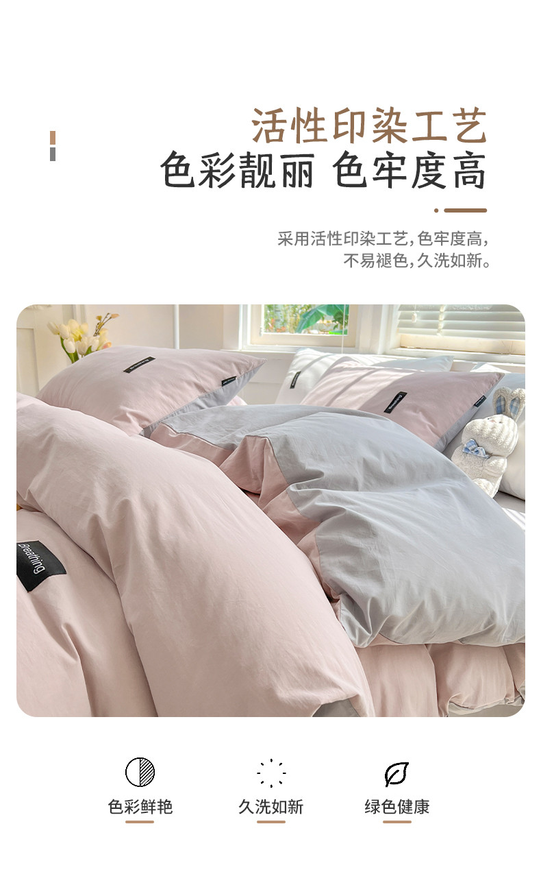 当前位置: 91家纺网 > 商品网购 > 床品套件 > 四件套 > 全棉普通四件套 > 绵庭家纺 2023新款全棉水洗棉拼色四件套 烟粉+绅士灰