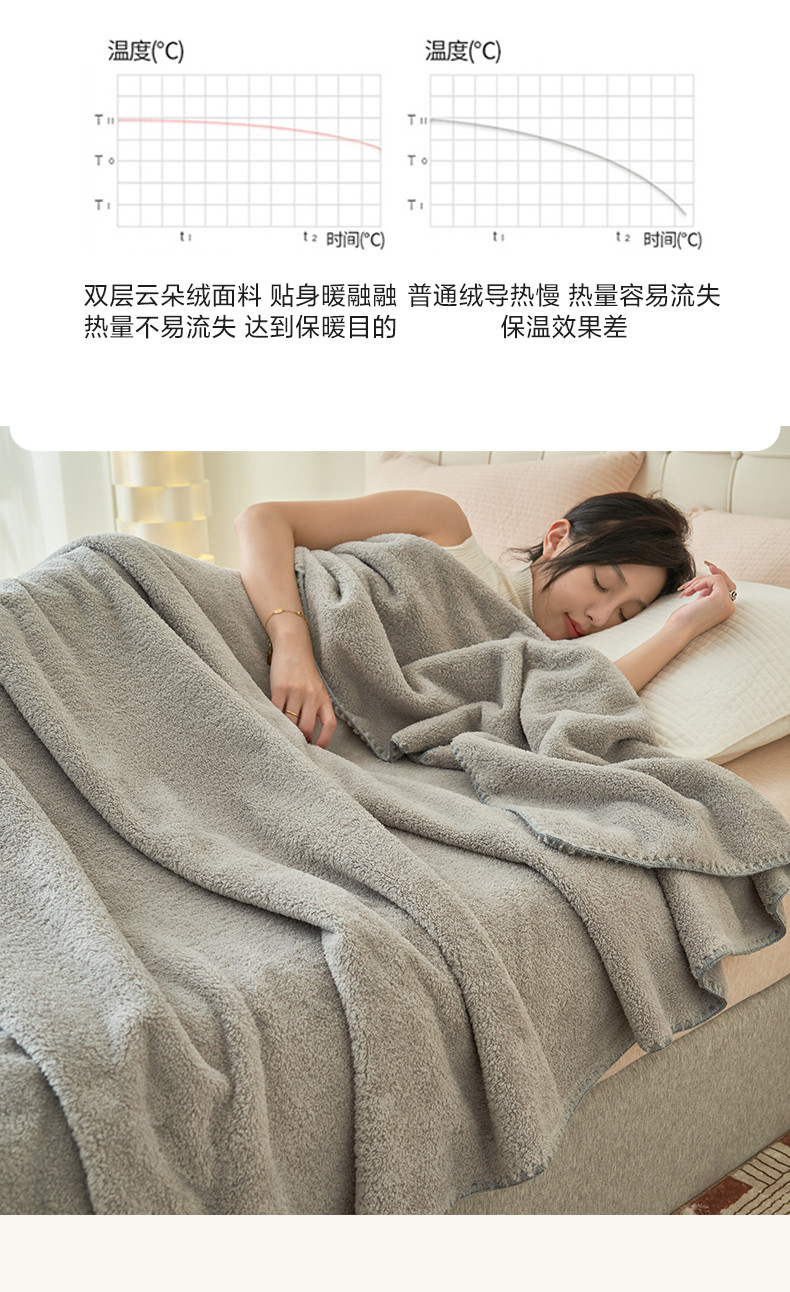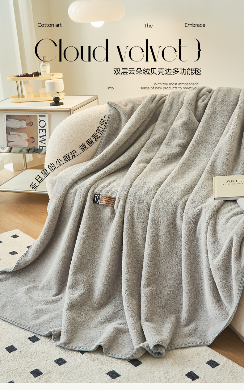 晨曦家纺 2023新款高克重440克云朵绒双层毛毯高级贝壳边加厚毯子 云朵绒-银河灰