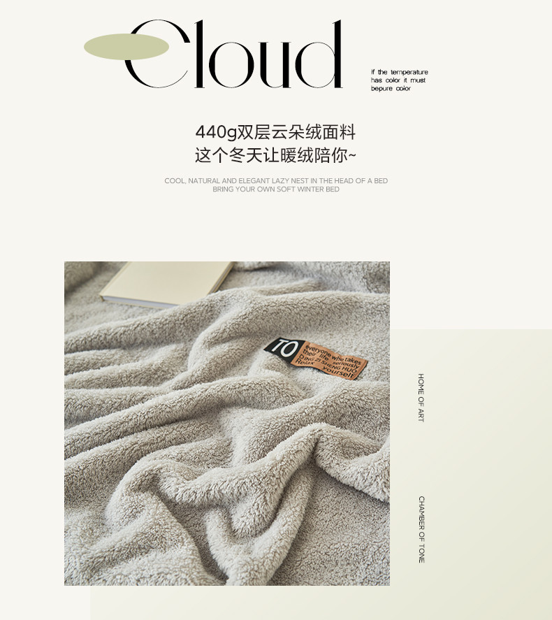 商品名称:晨曦家纺 2023新款高克重440克云朵绒双层毛毯高级贝壳边加厚毯子 云朵绒-银河灰