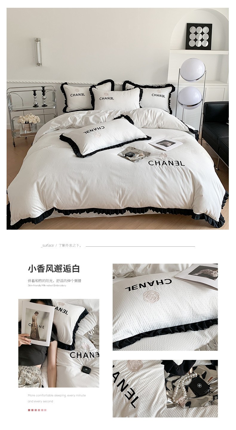 商品名称:吾欢心 2025新款华夫格暖小棉小香风邂逅系列四件套 小香风邂逅白