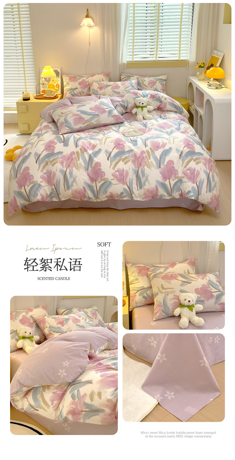 (总)芊寻家居 2025新款13372全棉印花系列四件套,柏拉图,草莓甜心,朵琦,广岛之恋,花丛 粉,幻蝶 粉,兰黛 绿,玫瑰情缘 粉,梦境女孩 米,茉莉清雨 紫,暮云 灰,青柠,如约,盛夏,小时代,小熊日记 棕,雅姿,芷若