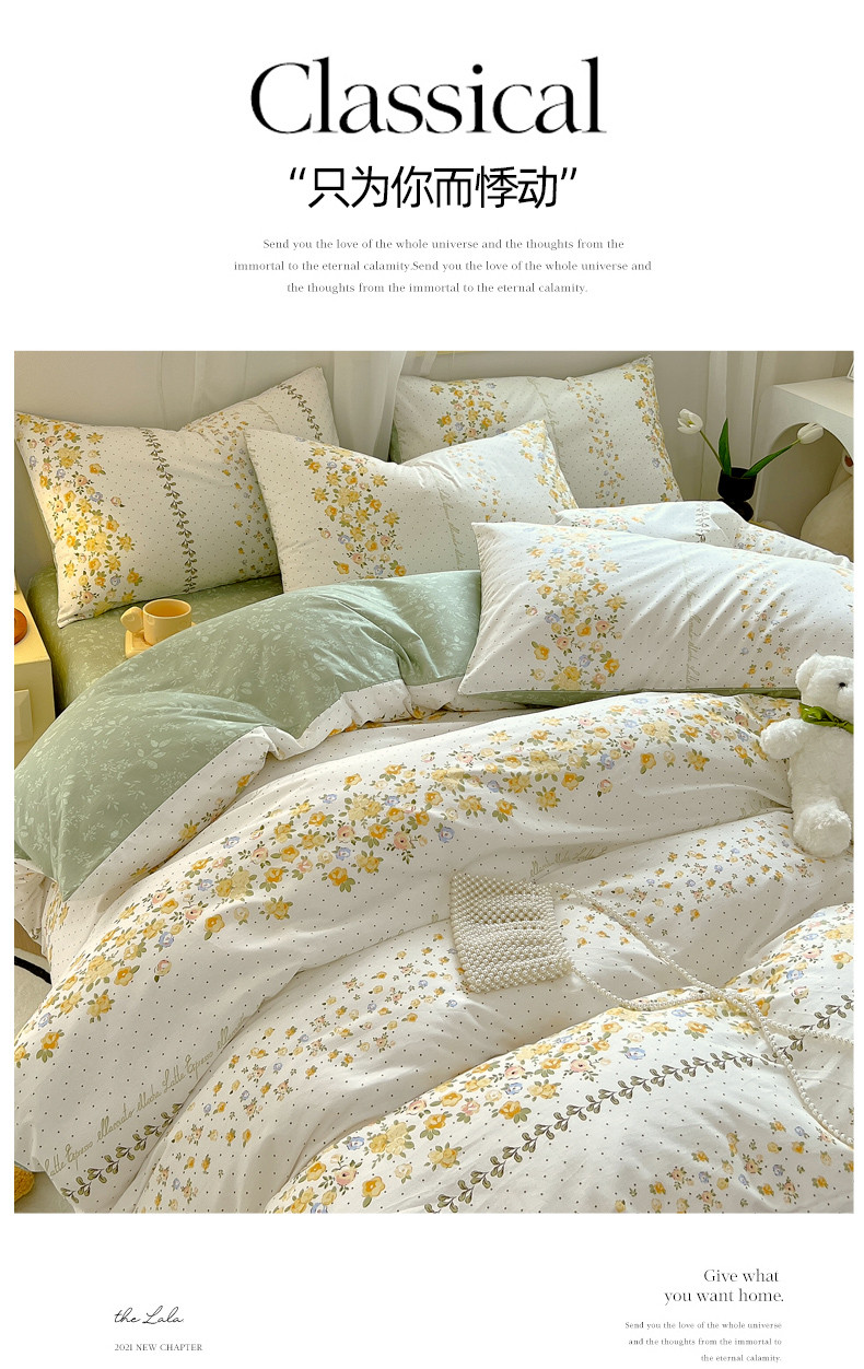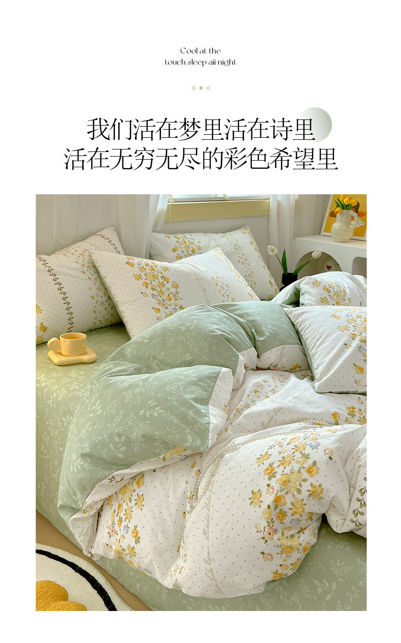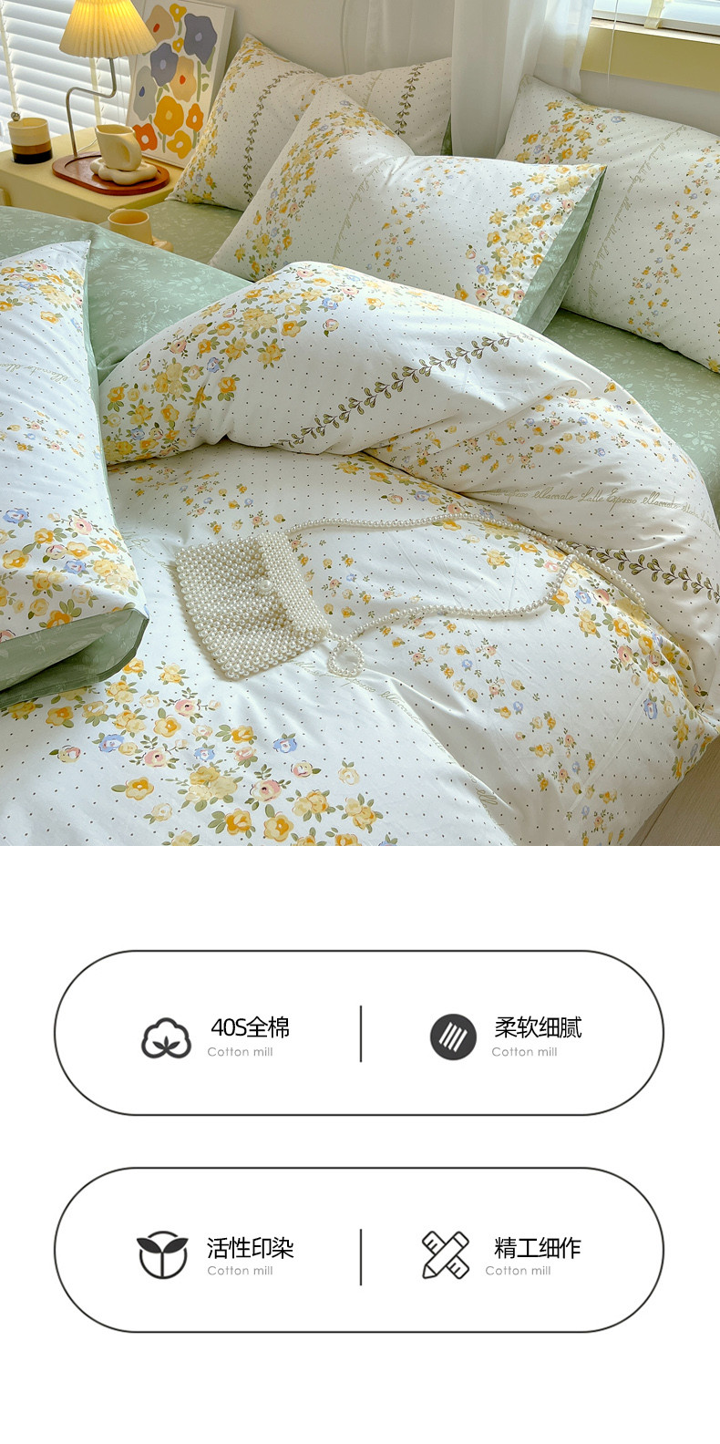 当前位置: 91家纺网 > 商品网购 > 床品套件 > 四件套 > 全棉普通四件套 > 芊寻 2024新款全棉13372田园风印花系列四件套 妙语花香