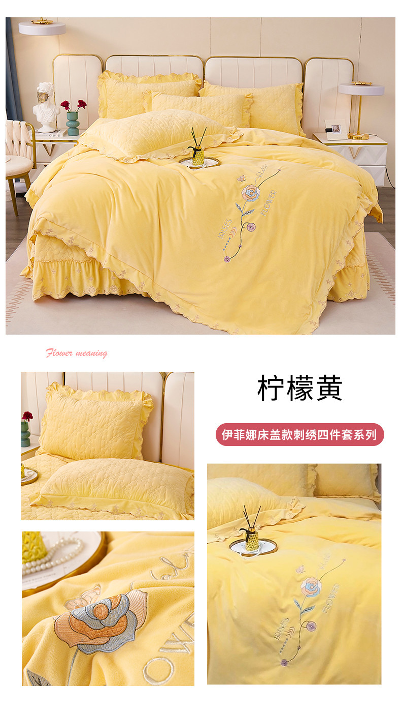 商品名称:卡迪亚 2023新款婴儿绒床盖款刺绣四件套床裙系列 柠檬黄