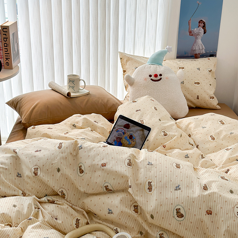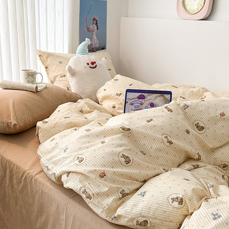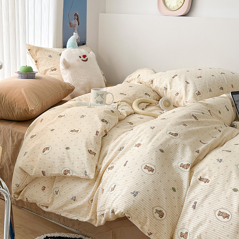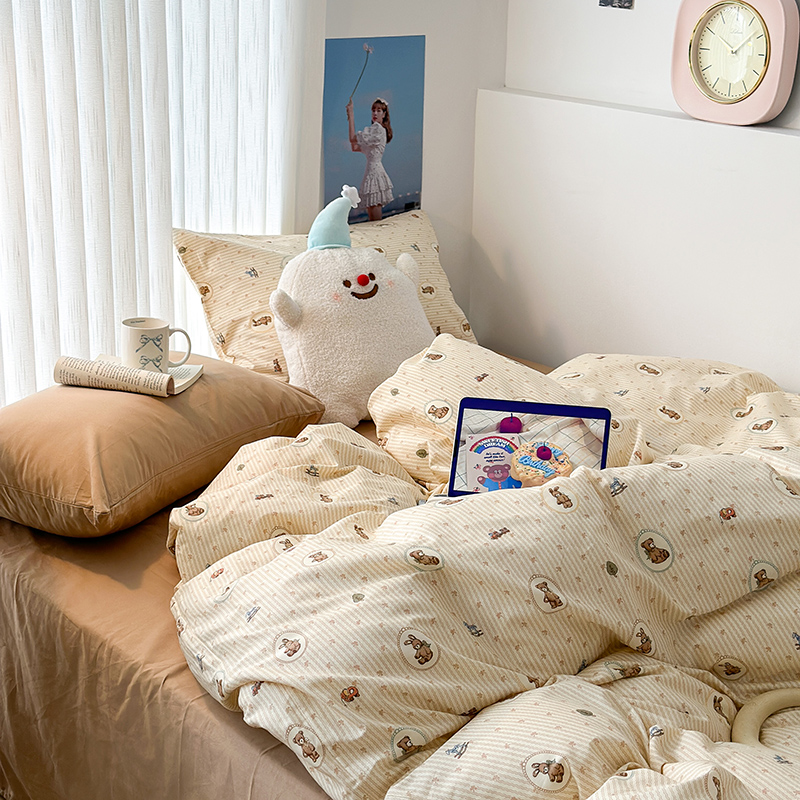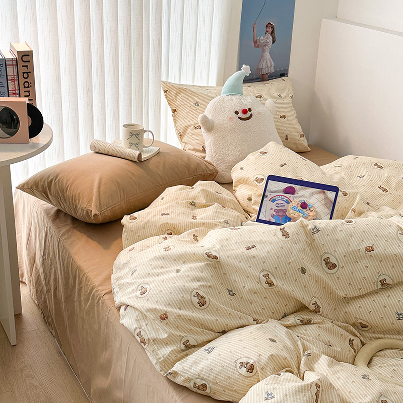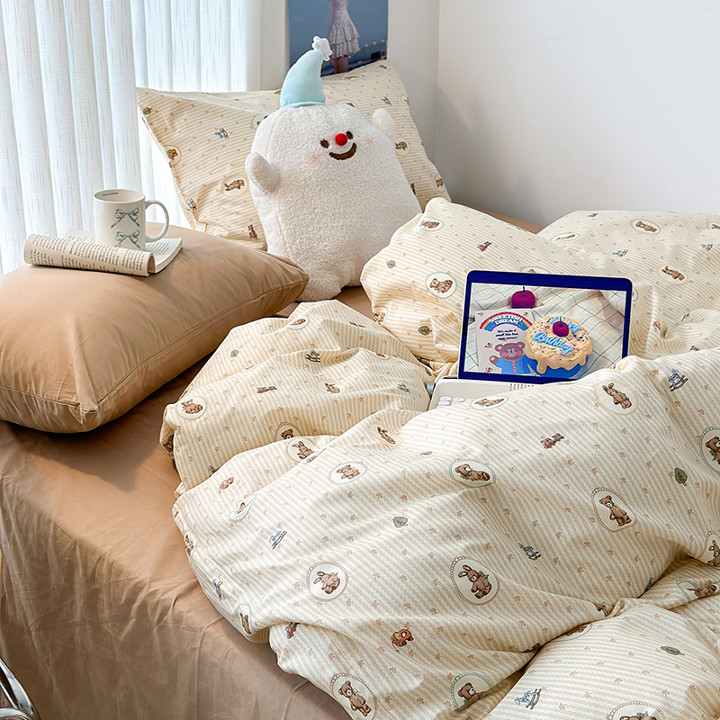 (总)昔可 2023新款学生季卡通普通款四件套,彩色气球熊,彩条恐龙,憨憨熊,花蜜小兔,蘑菇兔,圈圈草莓,蔬菜小兔,郁金香小萌狗