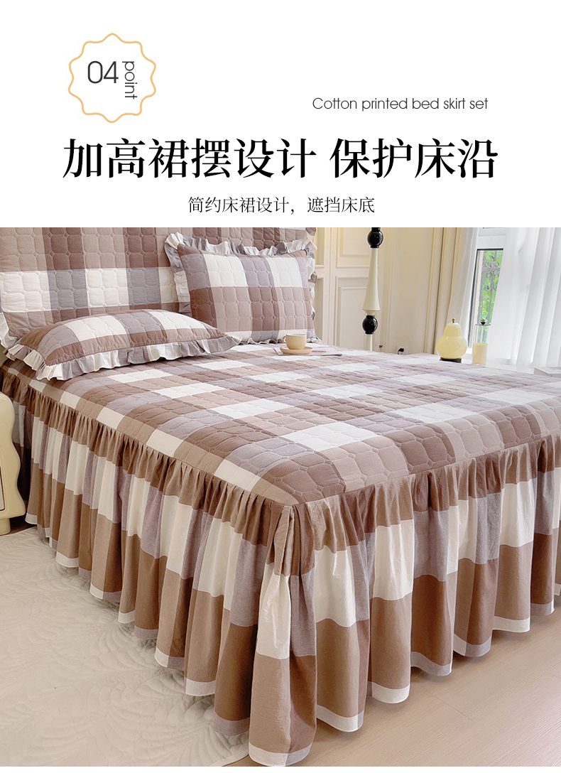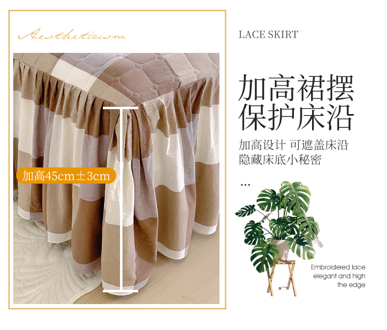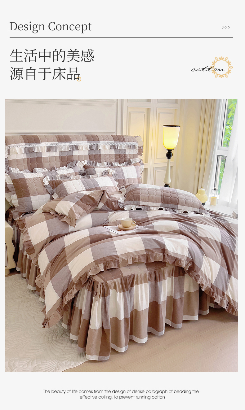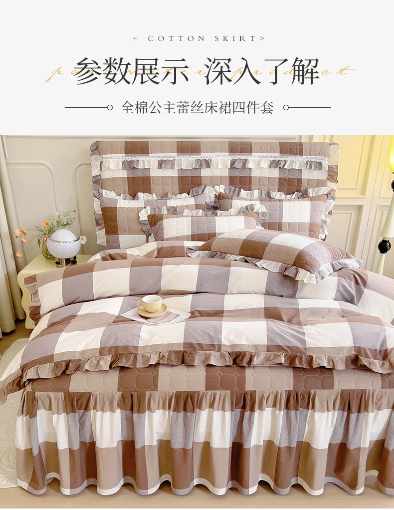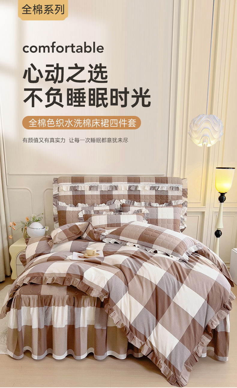当前位置: 91家纺网 > 商品网购 > 床品套件 > 四件套 > 水洗棉四件套 > 十个点 2024新款色织水洗棉韵格系列床裙款四件套 咖大格