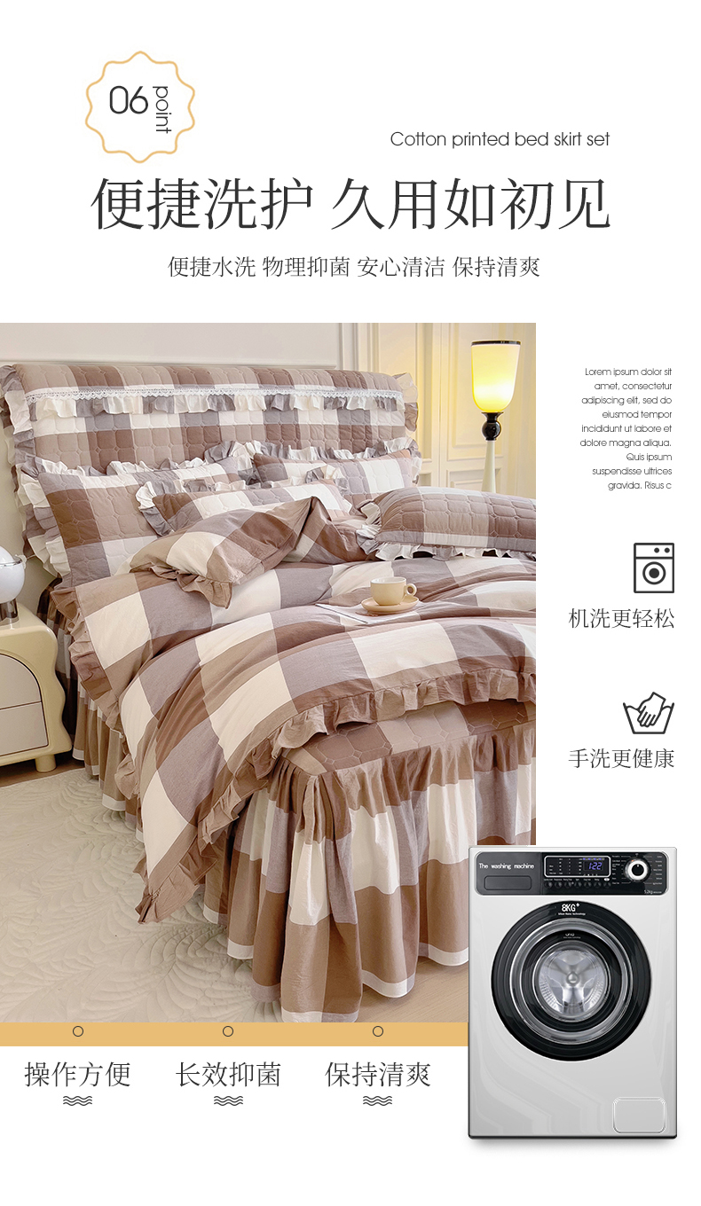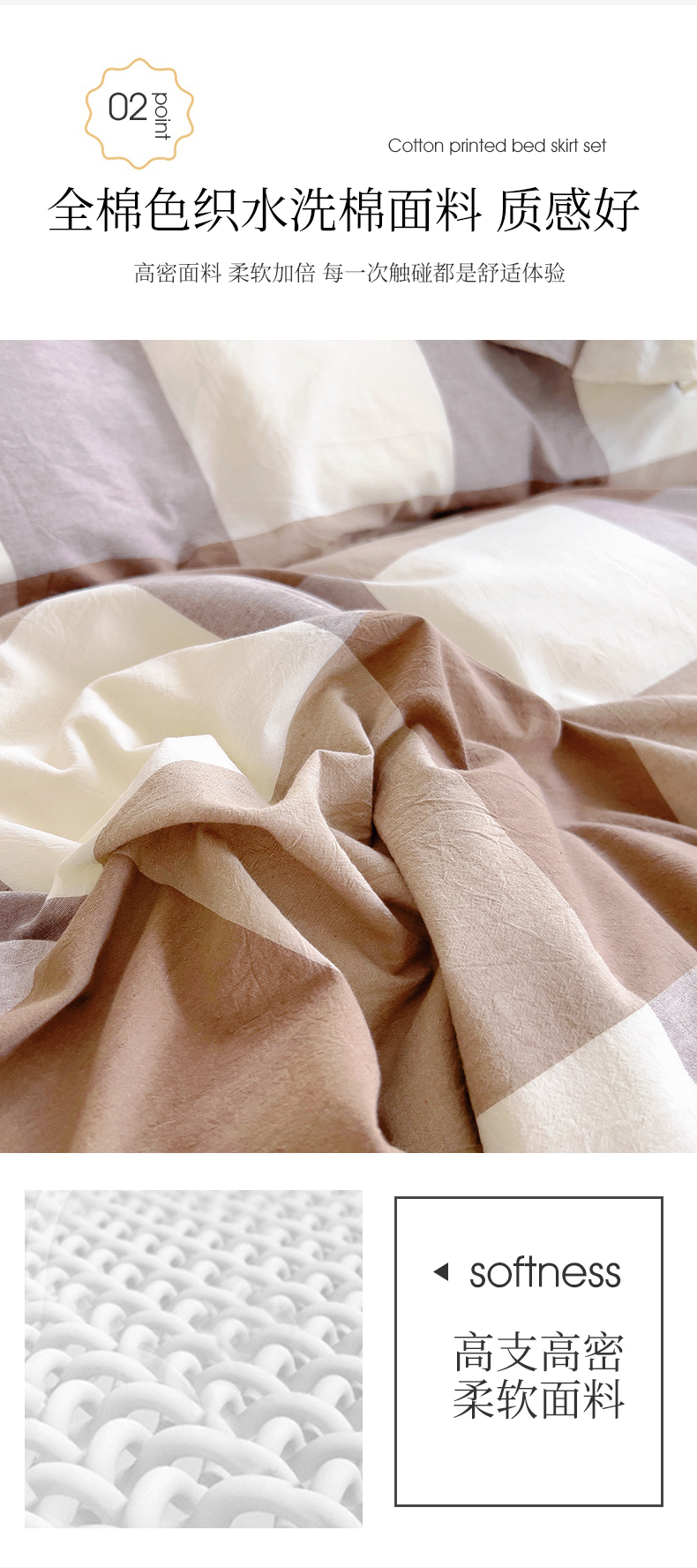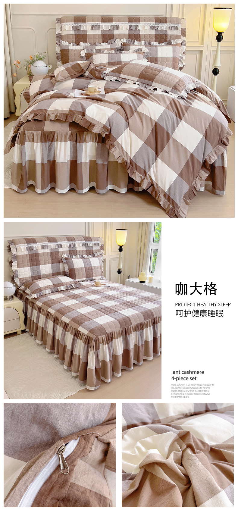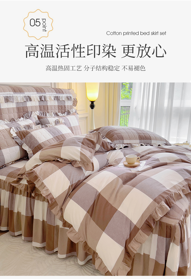 当前位置: 91家纺网 > 商品网购 > 床品套件 > 四件套 > 水洗棉四件套 > 十个点 2024新款色织水洗棉韵格系列床裙款四件套 咖大格