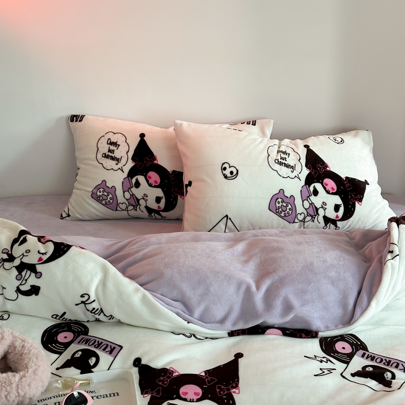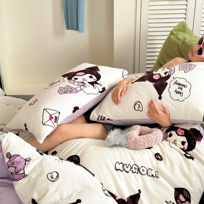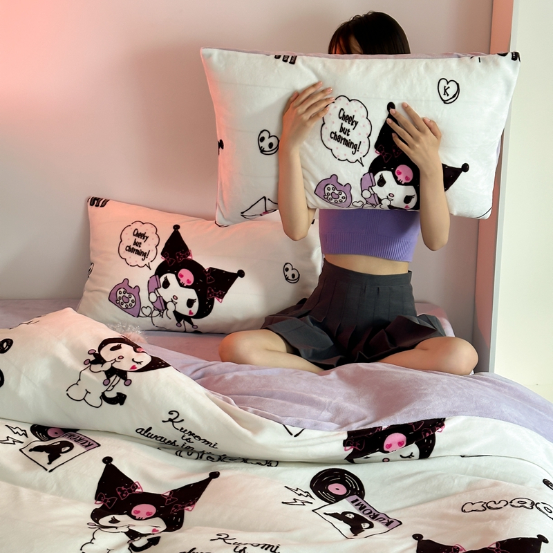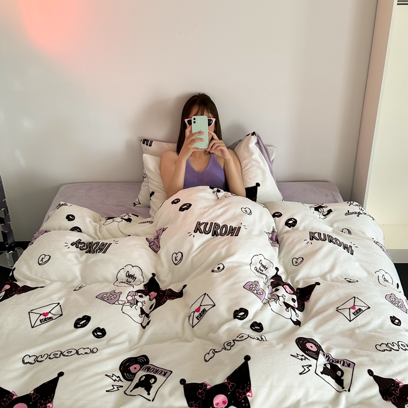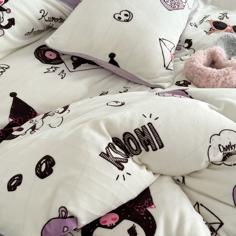 美乐迪家纺 2023新款正版三丽鸥牛奶绒四件套 库洛米怪兽