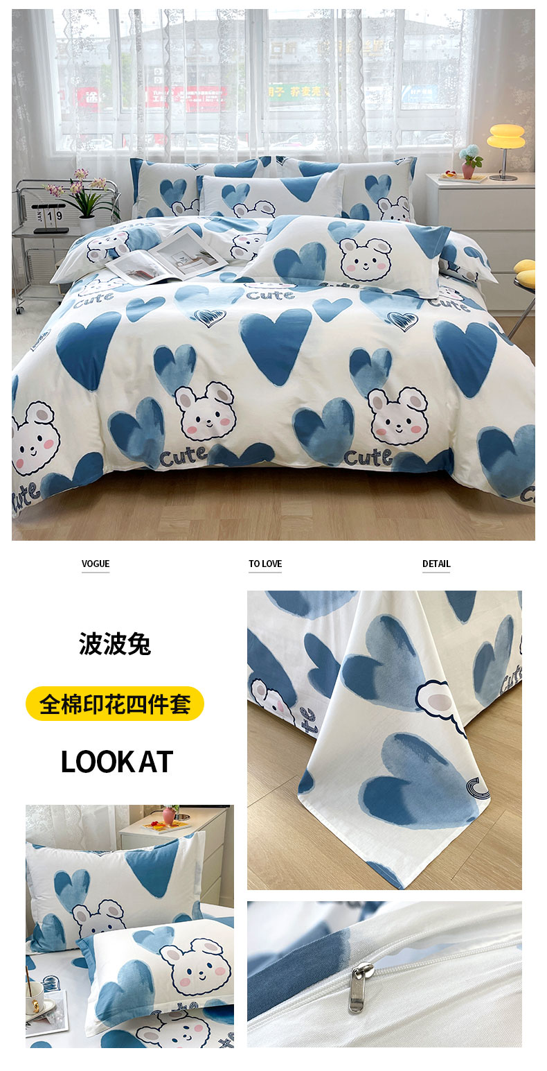 翎盈家纺 2023新款纯棉全棉喷气印花柔软舒适四件套 波波兔
