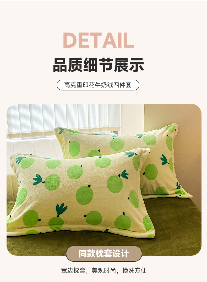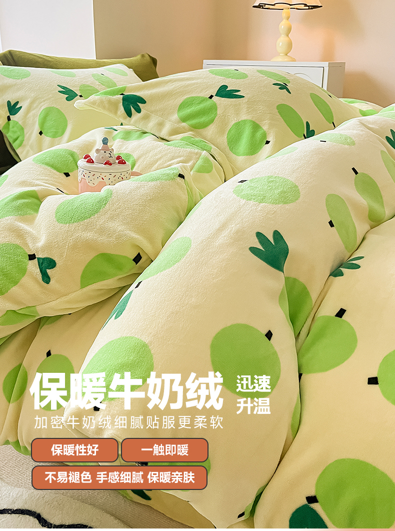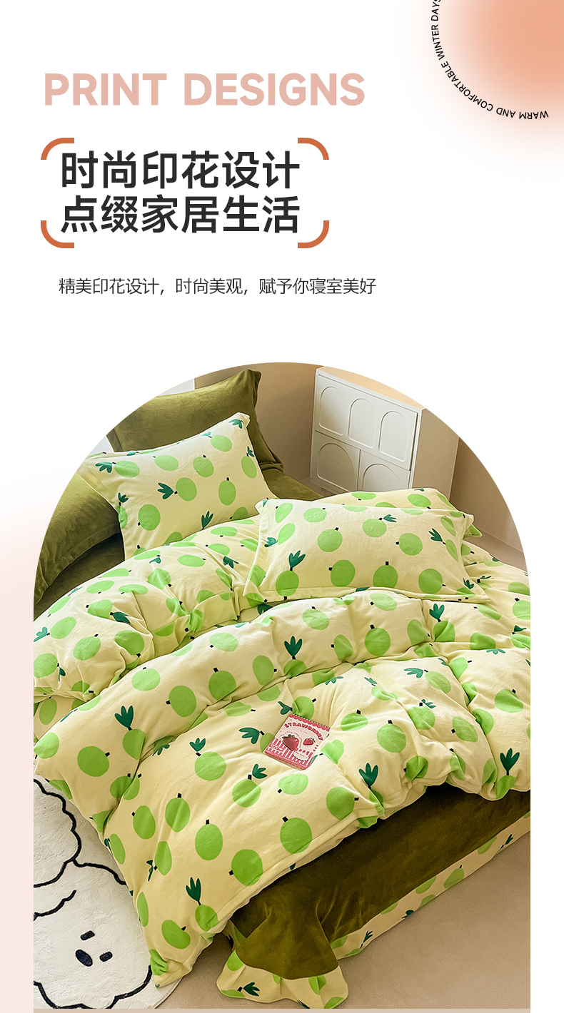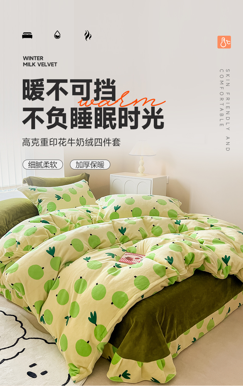 呗旺鹿 2023新款高克重印花牛奶绒四件套直播 硕果