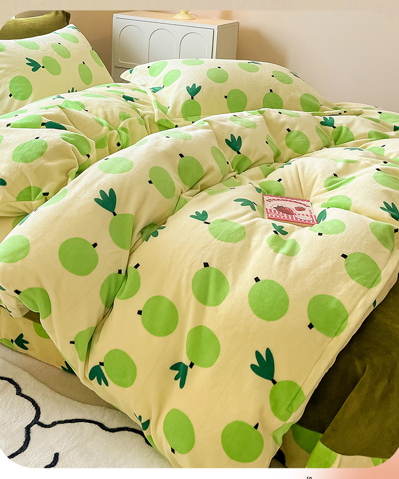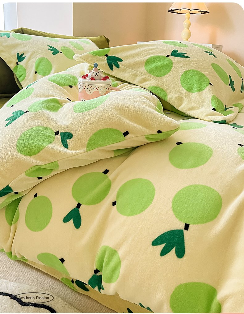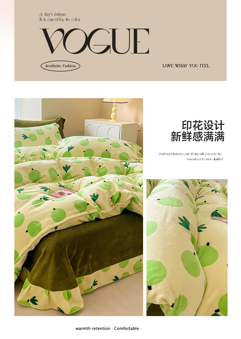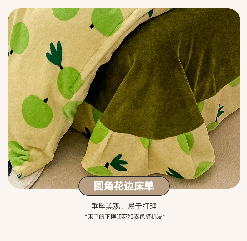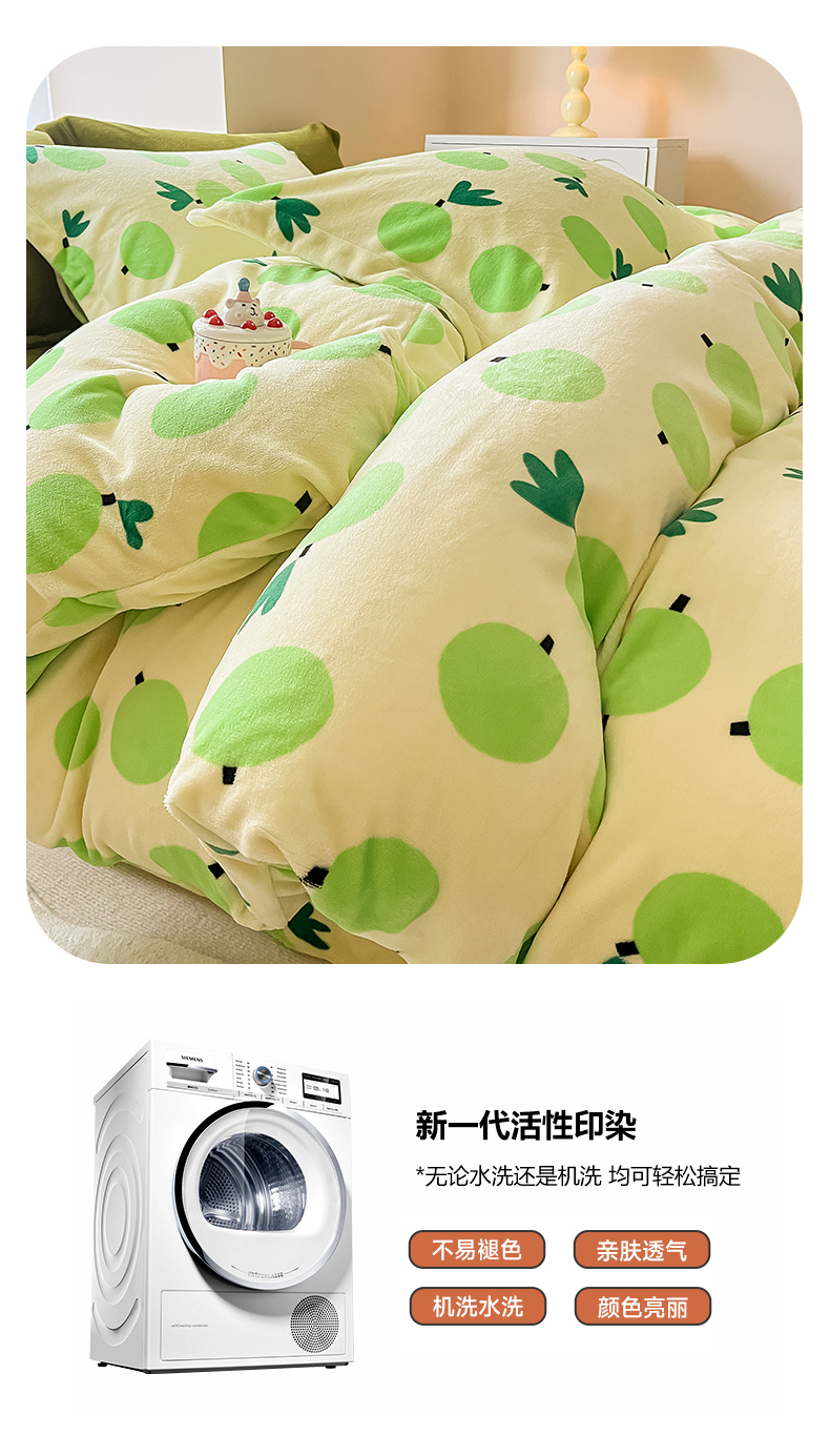 呗旺鹿 2023新款高克重印花牛奶绒四件套直播 硕果