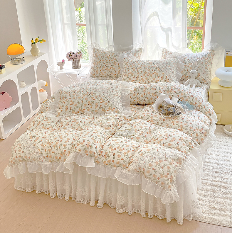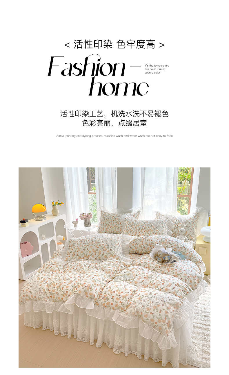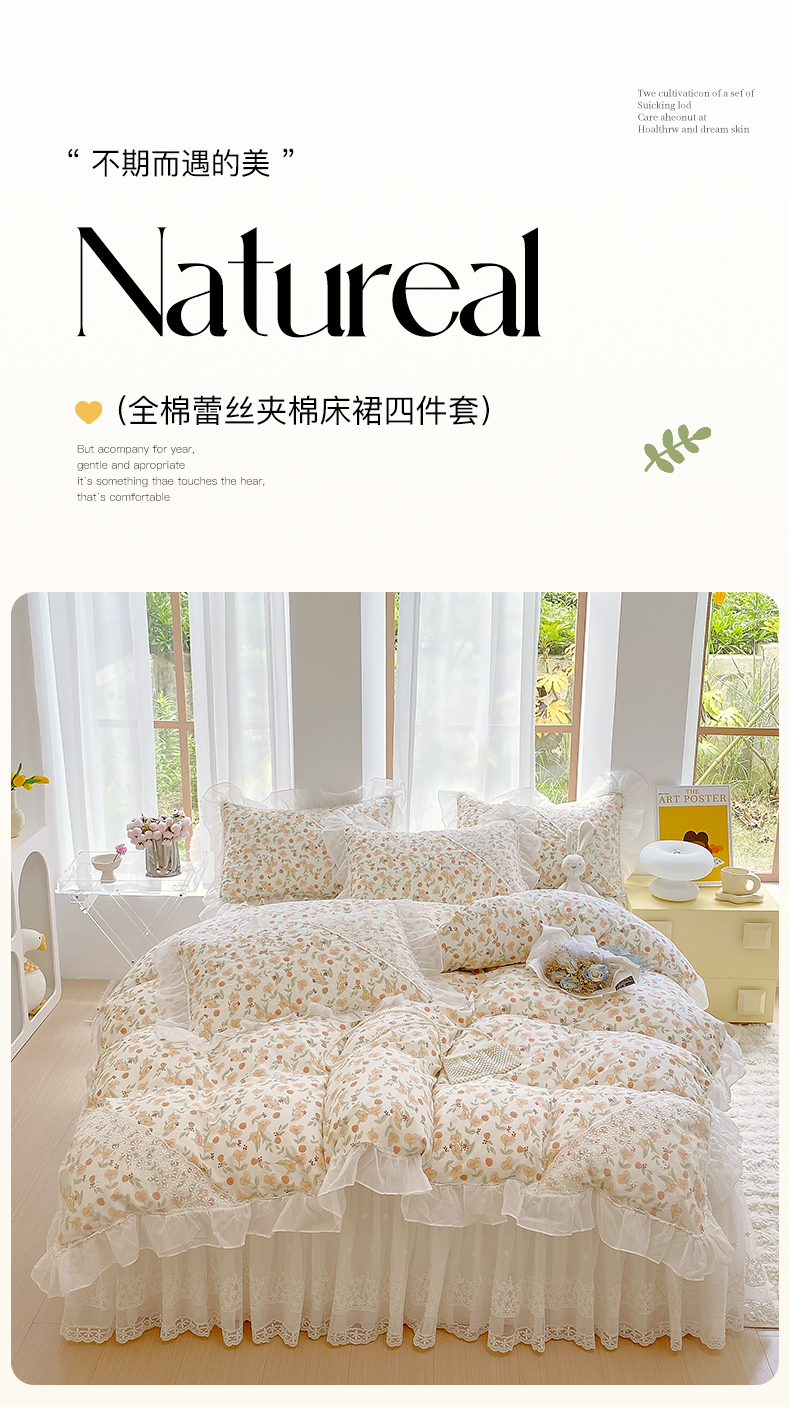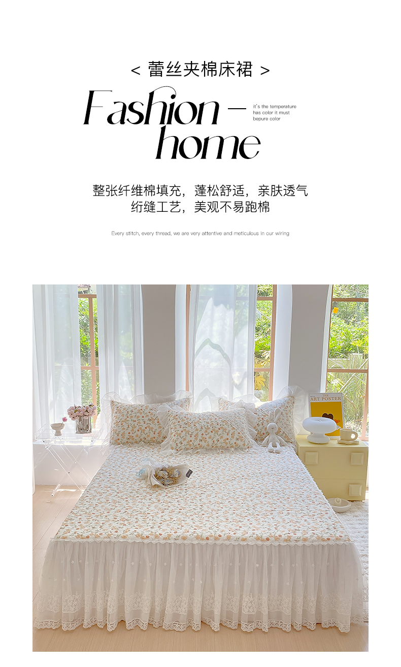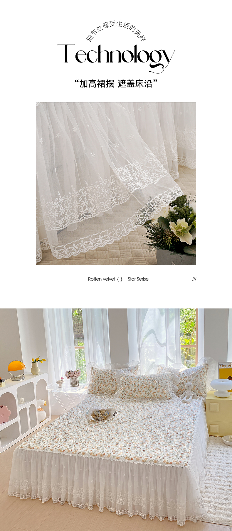 当前位置: 91家纺网 > 商品网购 > 床品套件 > 四件套 > 全棉普通四件套 > 罗艺轩家纺2024新款全棉蕾丝夹棉床裙忆江南系列-四件套 忆江南~花千朵