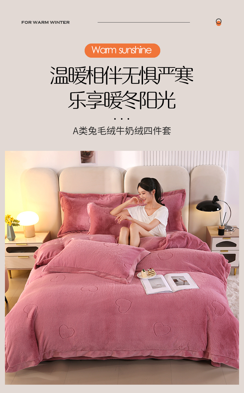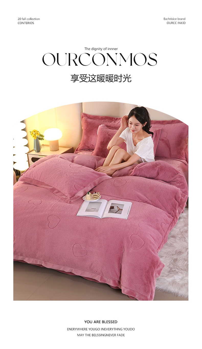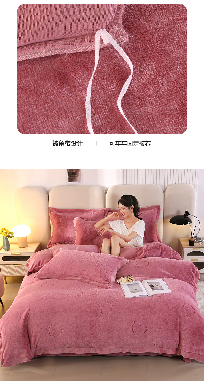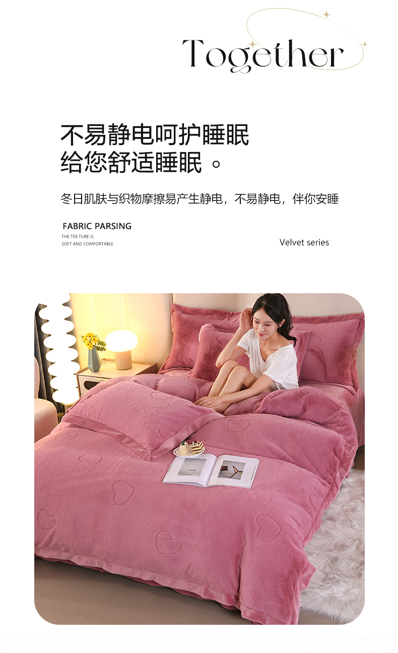(总)代芙家纺 2025新款宝宝绒夹棉床盖款四件套,甜心-粉豆沙,甜心-海蓝,甜心-火山红,甜心-魔力紫,甜心-优雅灰