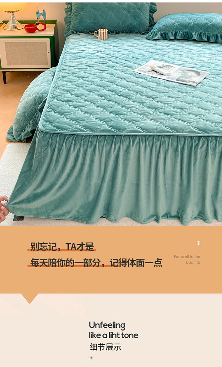 商品名称:(总)忘忧草 2023新款宝宝绒夹棉床裙保暖牛奶绒优雅系列