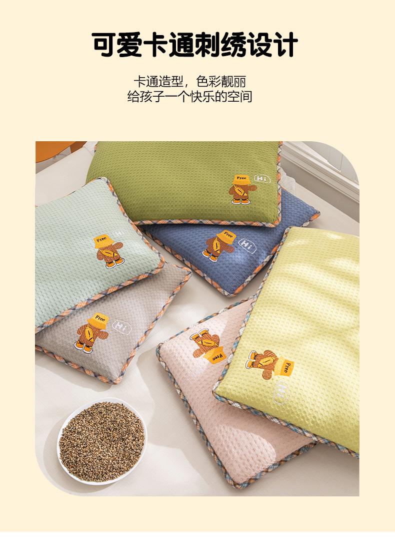 • 91家纺网 家纺一手货源 找家纺 织布人 2023新款荞麦枕可拆洗儿童学生枕头全棉华夫格刺绣枕套+枕芯 你好同学-果绿荞麦枕