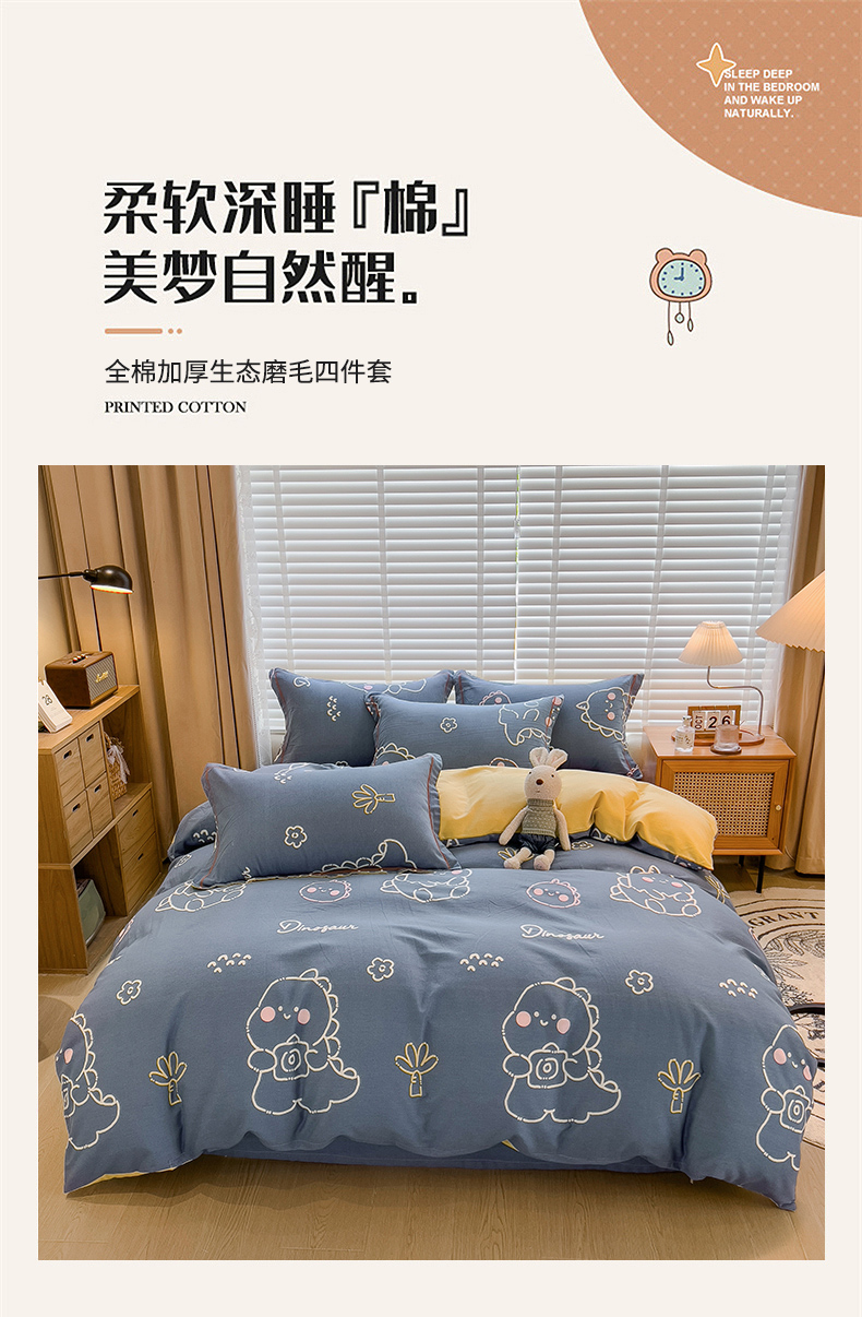商品名称:芃成家纺 2023新款磨毛四件套 恐龙王国-兰