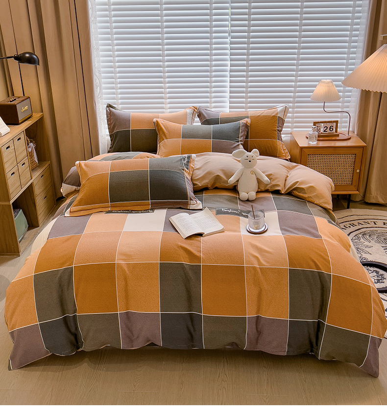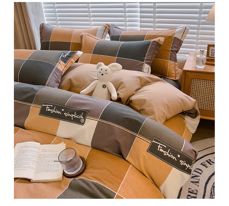芃成家纺 2023新款磨毛四件套 青春格-棕