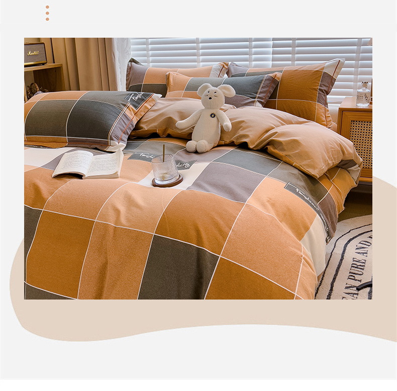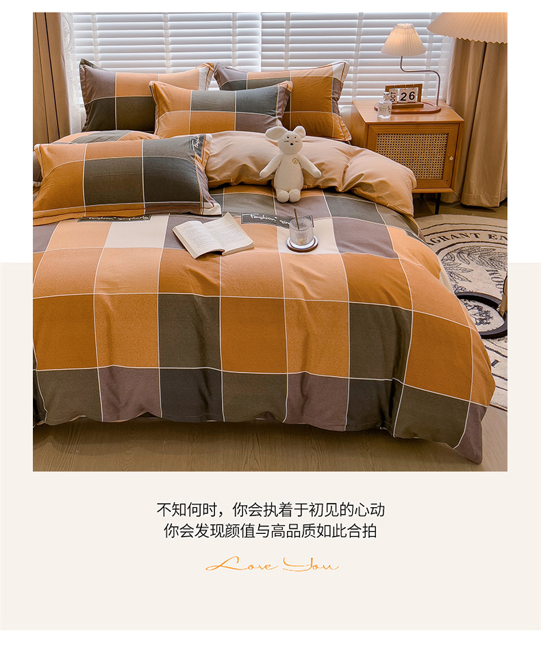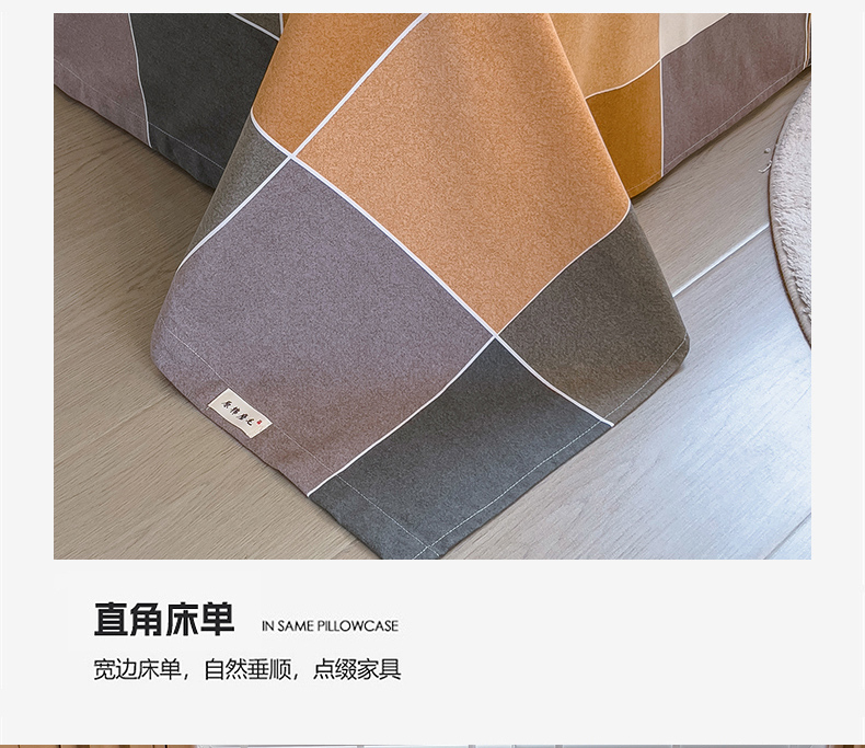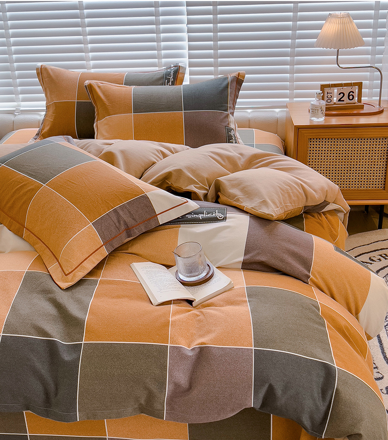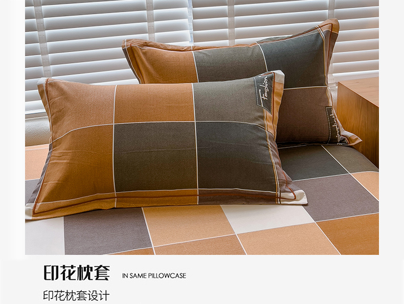商品名称:芃成家纺 2023新款磨毛四件套 青春格-棕