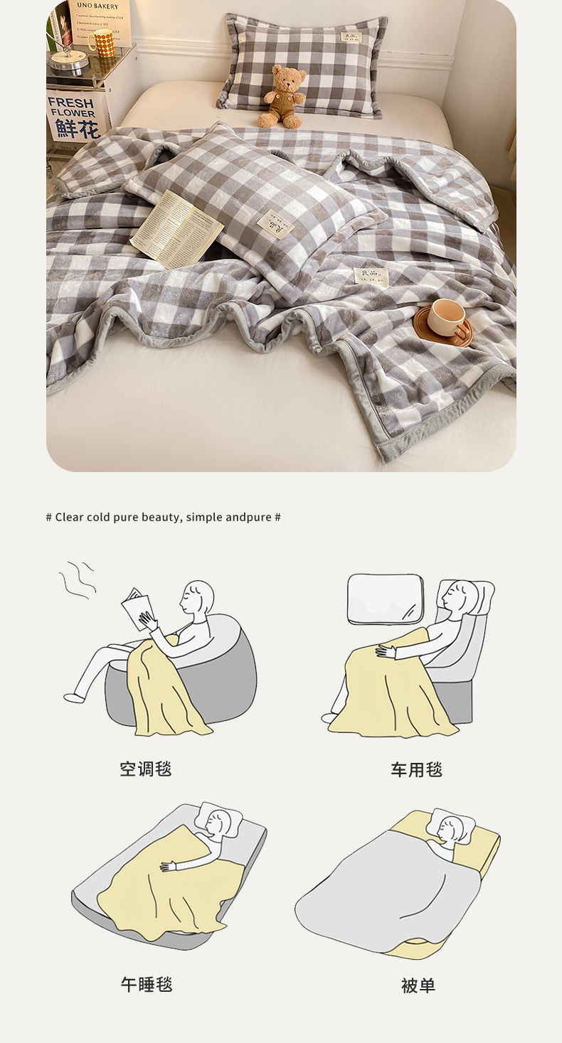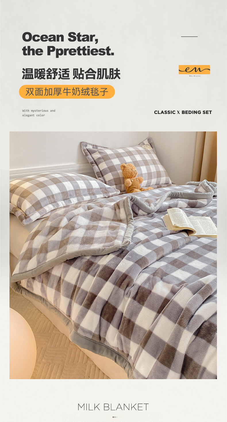 当前位置: 91家纺网 > 商品网购 > 毛毯休闲毯绒毯 > 毛毯 > 慕木家纺 2025新款牛奶绒双面绒纯色印花毛毯盖毯三件套 灰大格