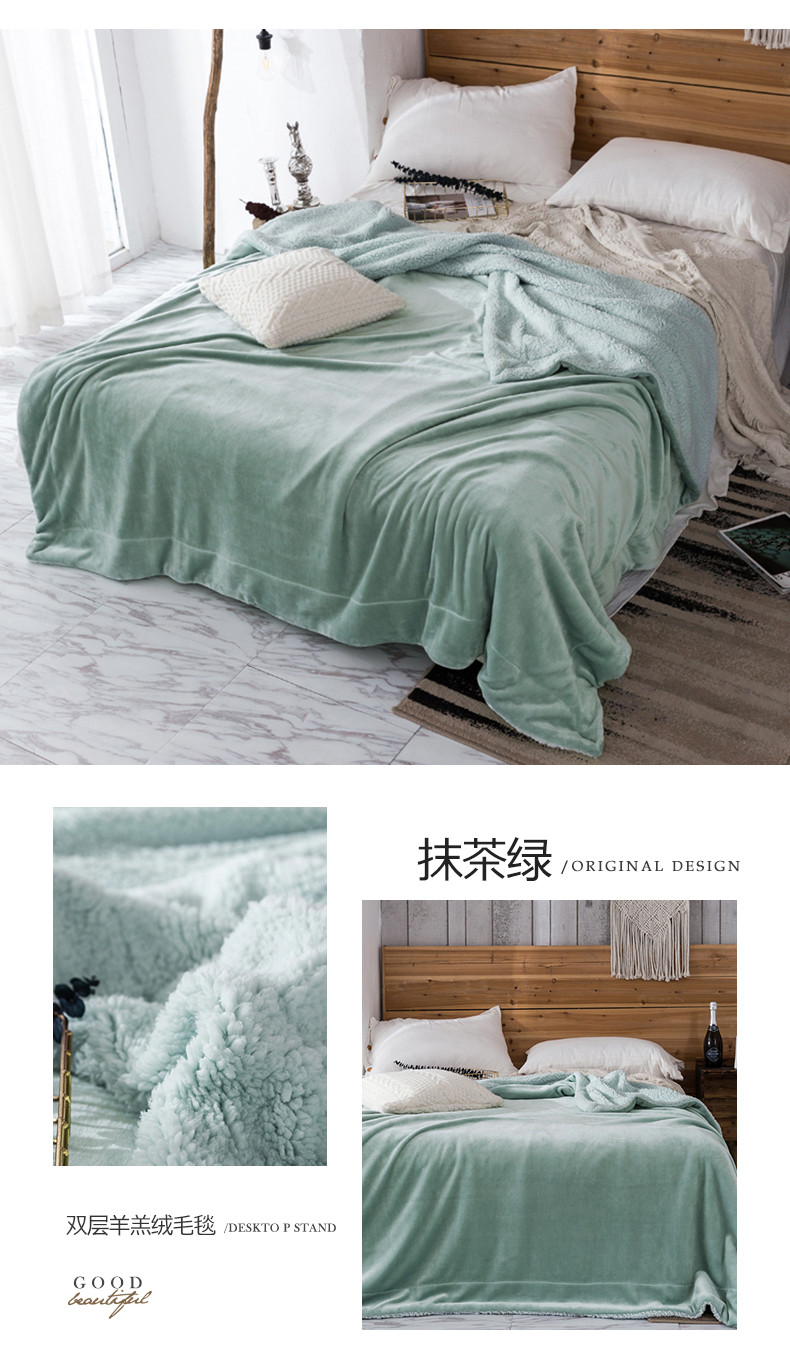 商品名称:欧邦 新款爆款纯色羊羔绒双层毛毯 抹茶绿