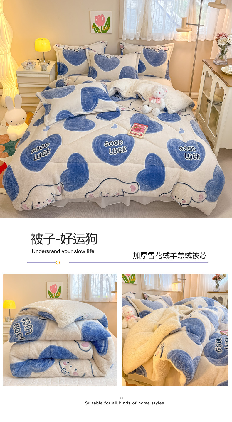 商品名称:花伞 2023新款加厚雪花绒羊羔绒秋冬被保暖被芯 被子-好运狗