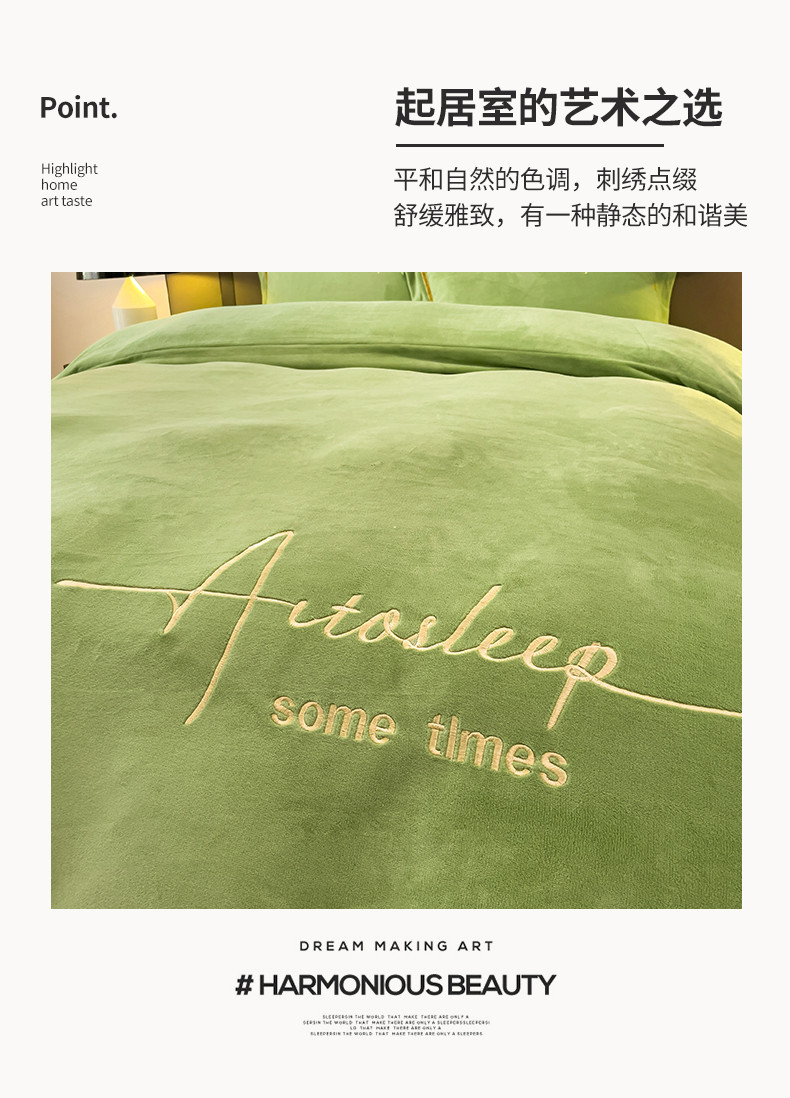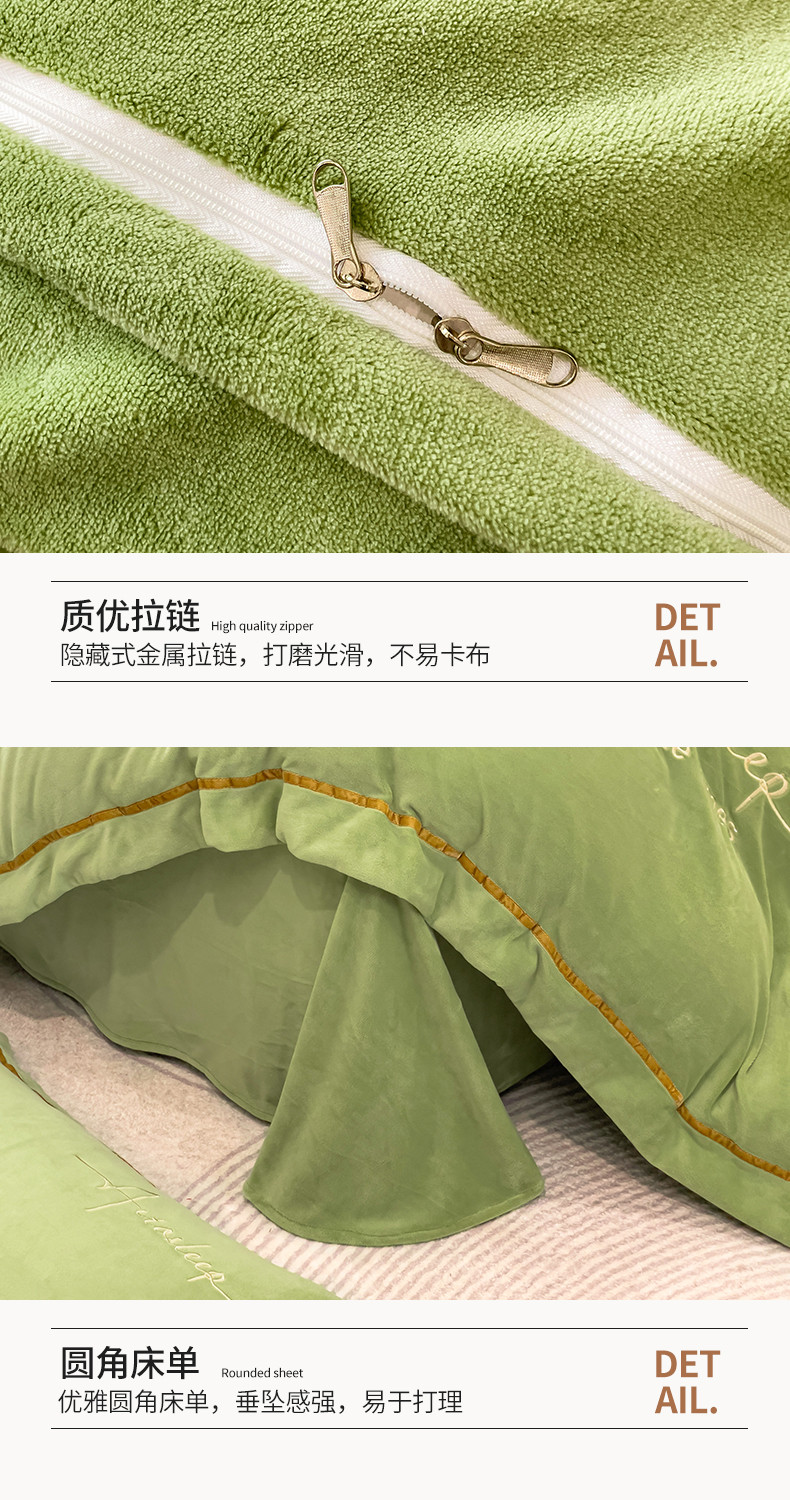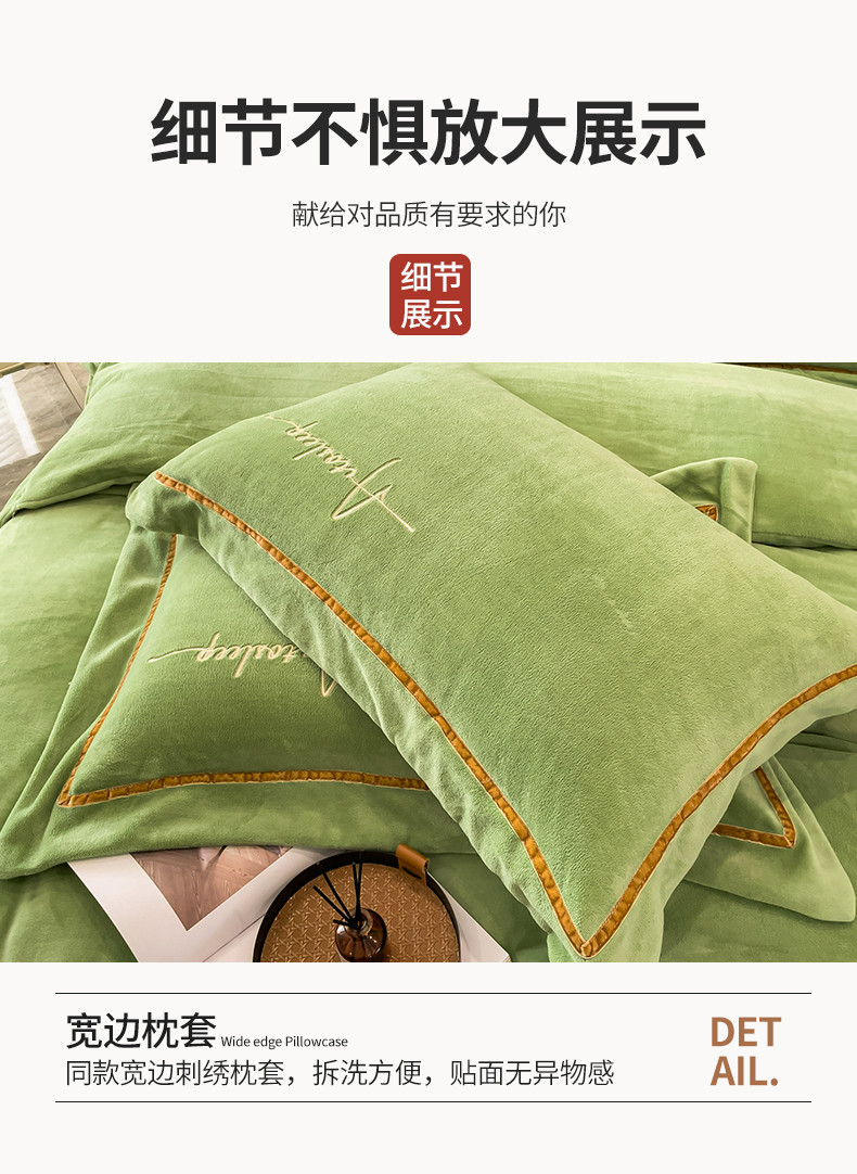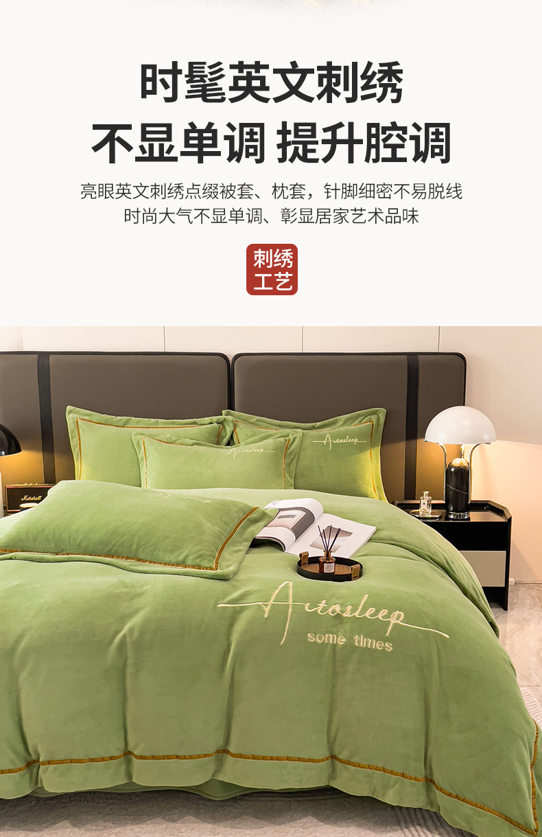 当前位置: 91家纺网 > 商品网购 > 床品套件 > 四件套 > 牛奶绒四件套 > 露梦 2025新款高克重牛奶绒刺绣四件套-赫本 赫本-抹茶绿