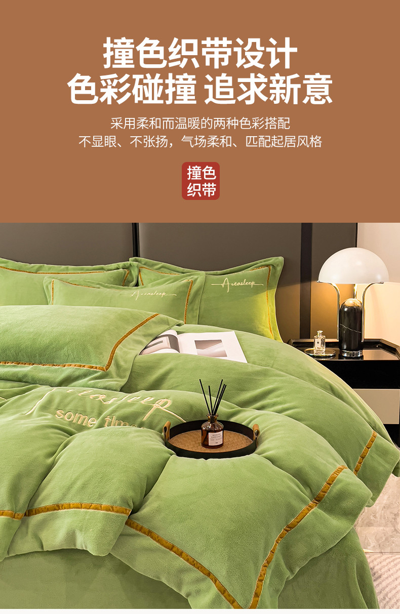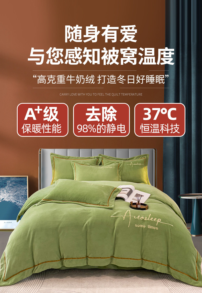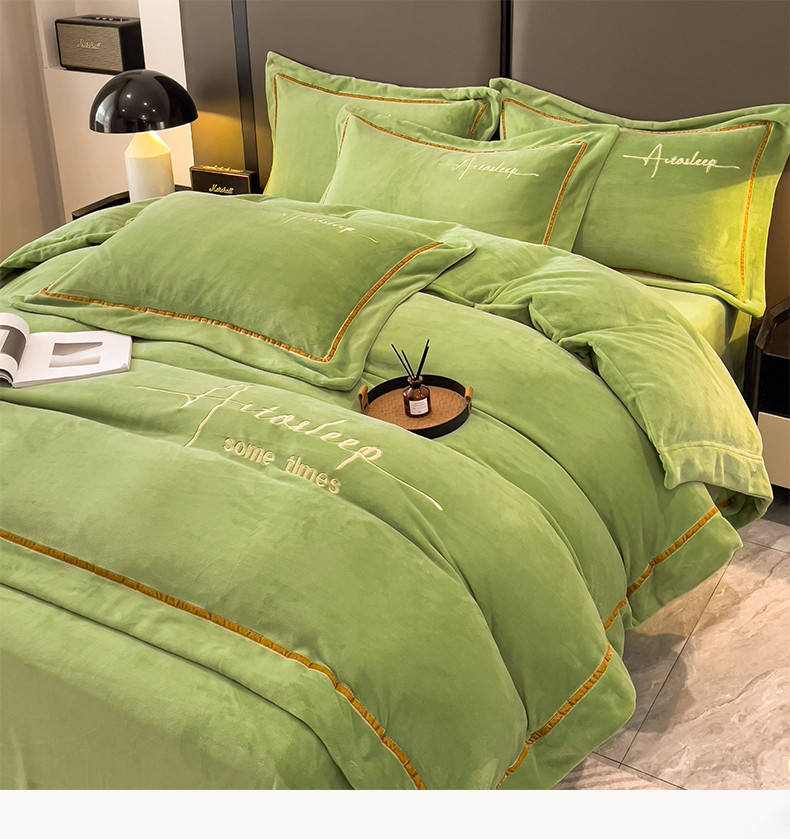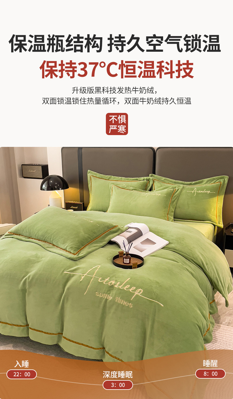 当前位置: 91家纺网 > 商品网购 > 床品套件 > 四件套 > 牛奶绒四件套 > 露梦 2025新款高克重牛奶绒刺绣四件套-赫本 赫本-抹茶绿