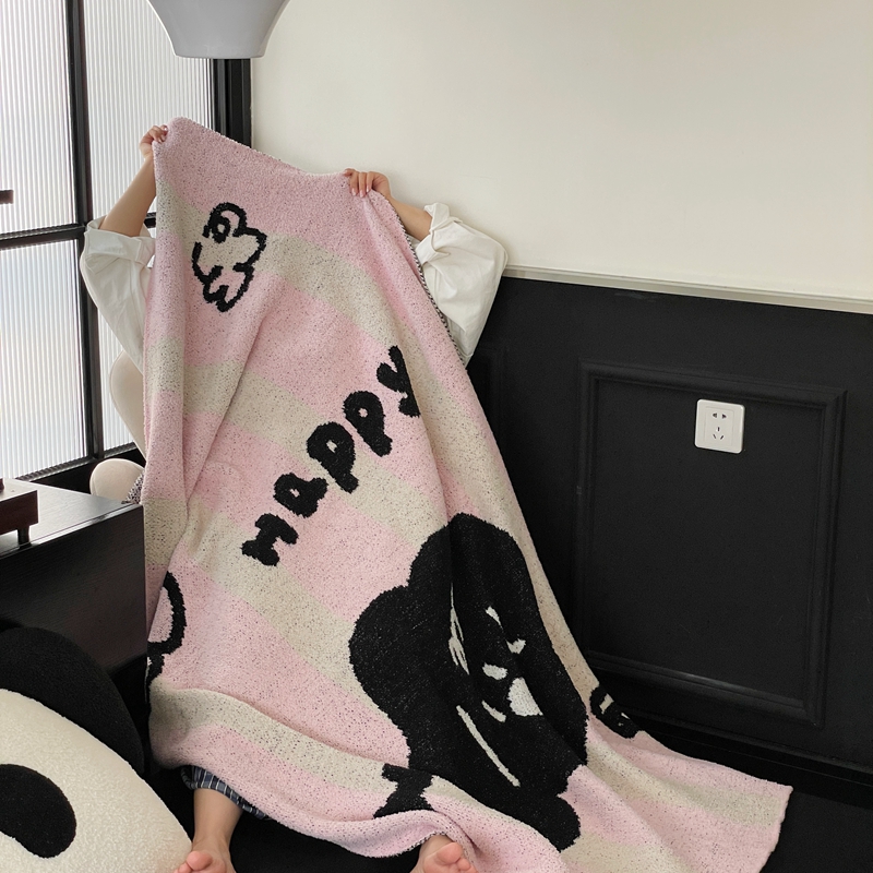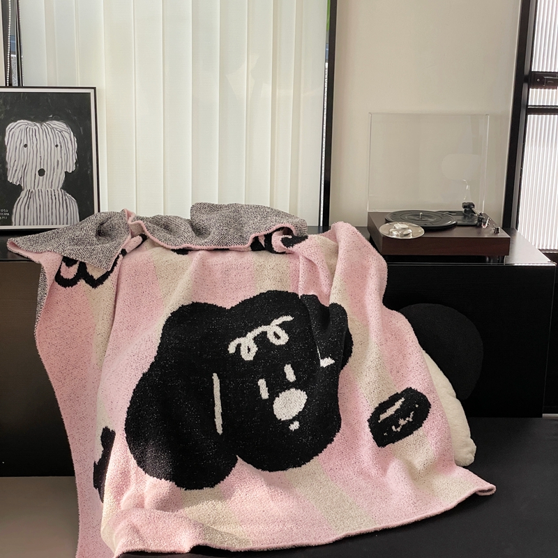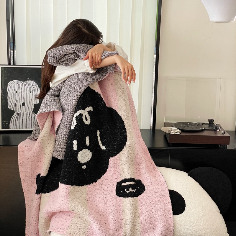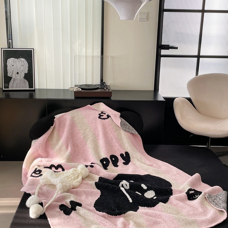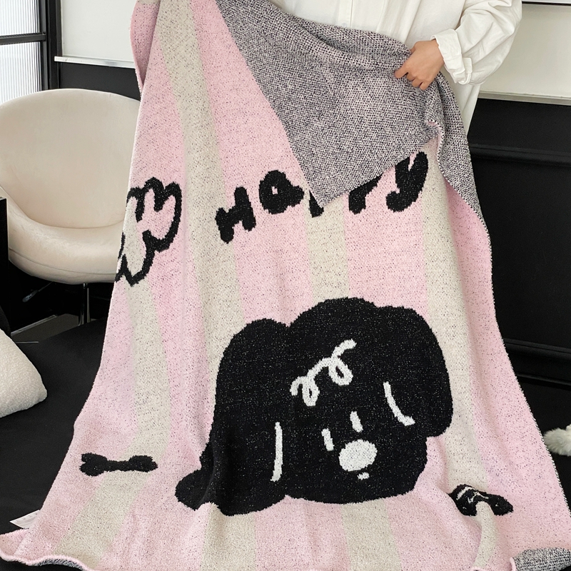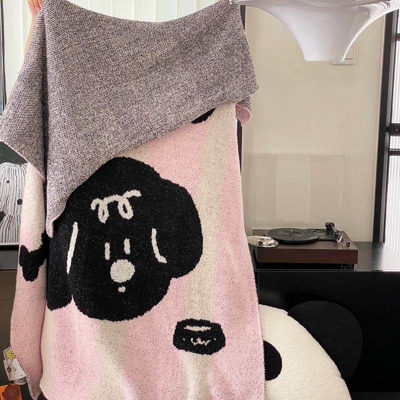 圆岛家纺 2023新款半边绒针织毛毯 快乐小狗