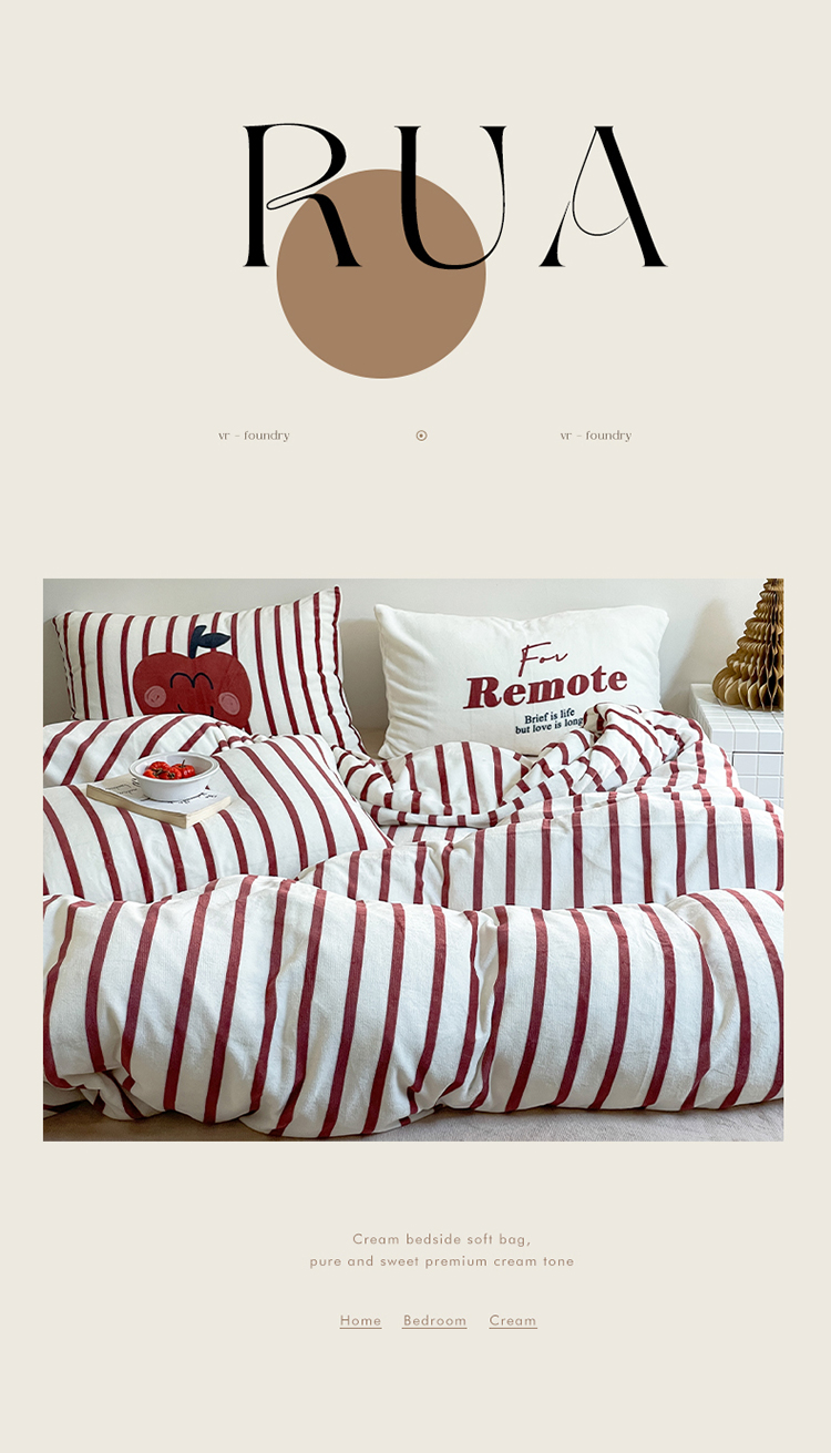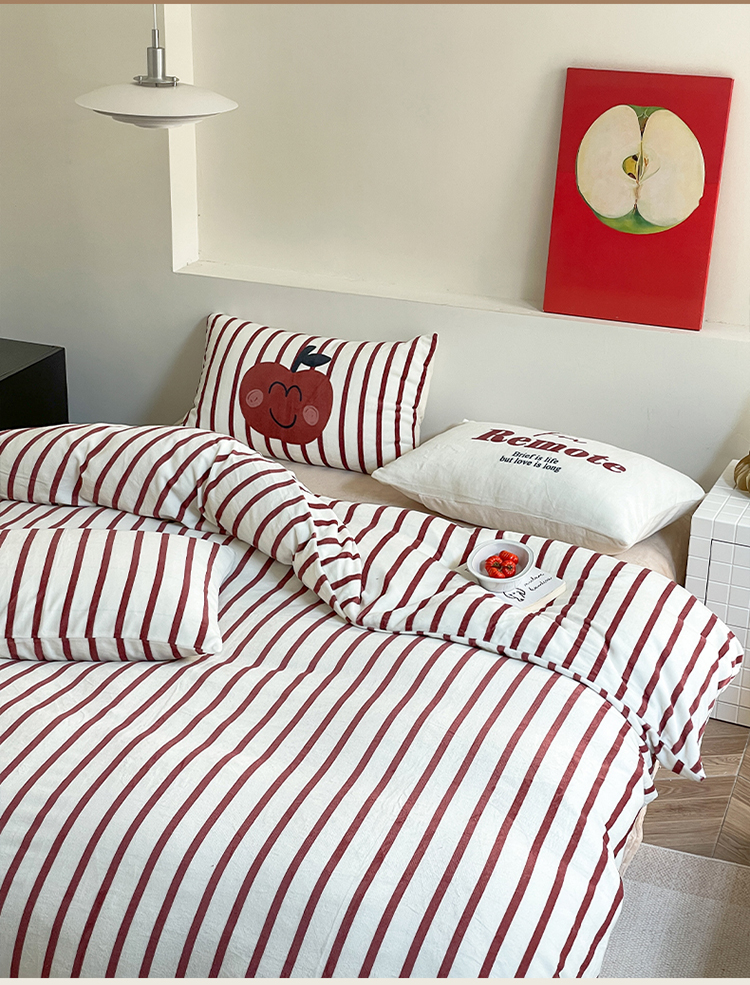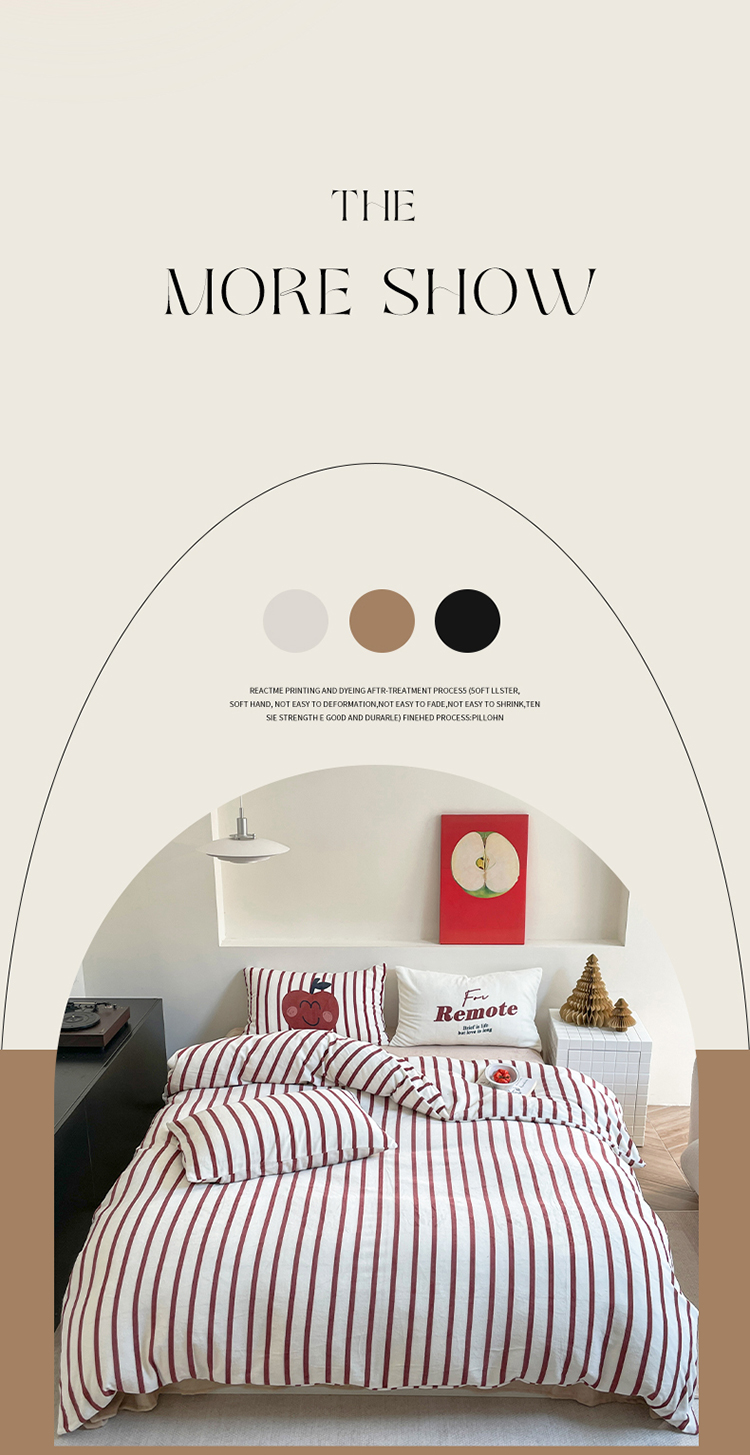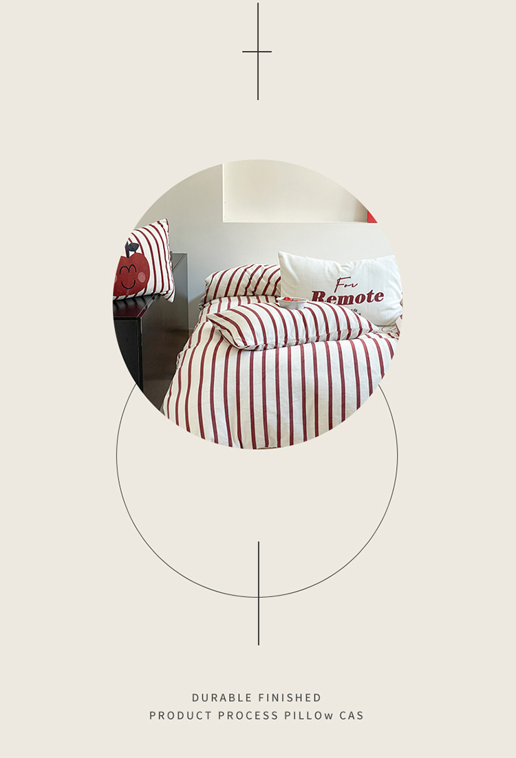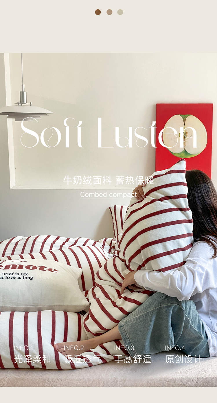圆岛家纺 2023新款原创牛奶绒印花保暖四件套 枣红细条
