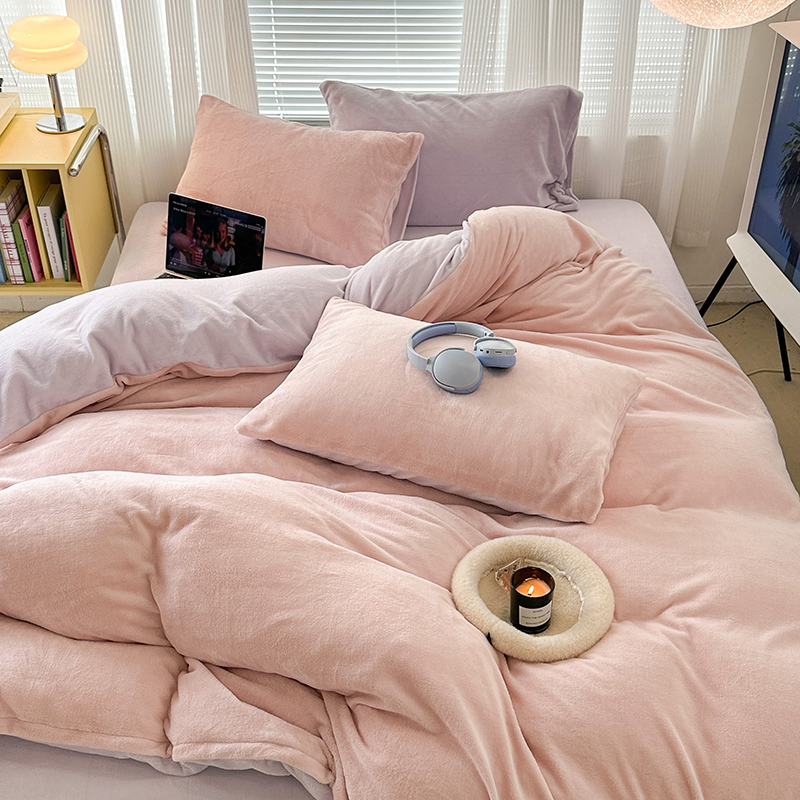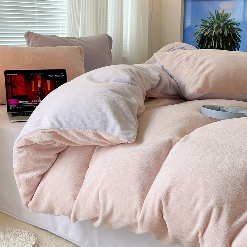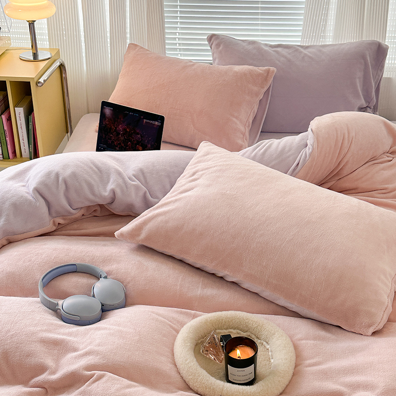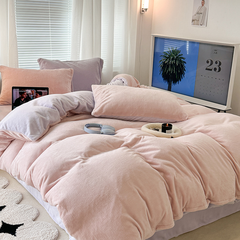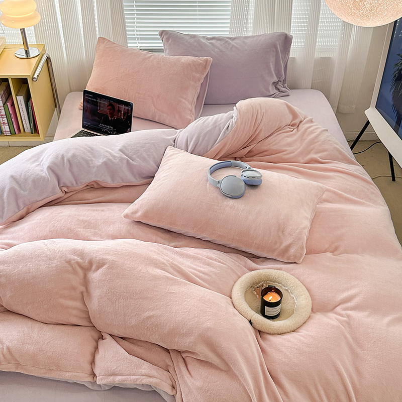 昔可家纺 2023新款奶油纯色系列双拼牛奶绒四件套 奶油粉