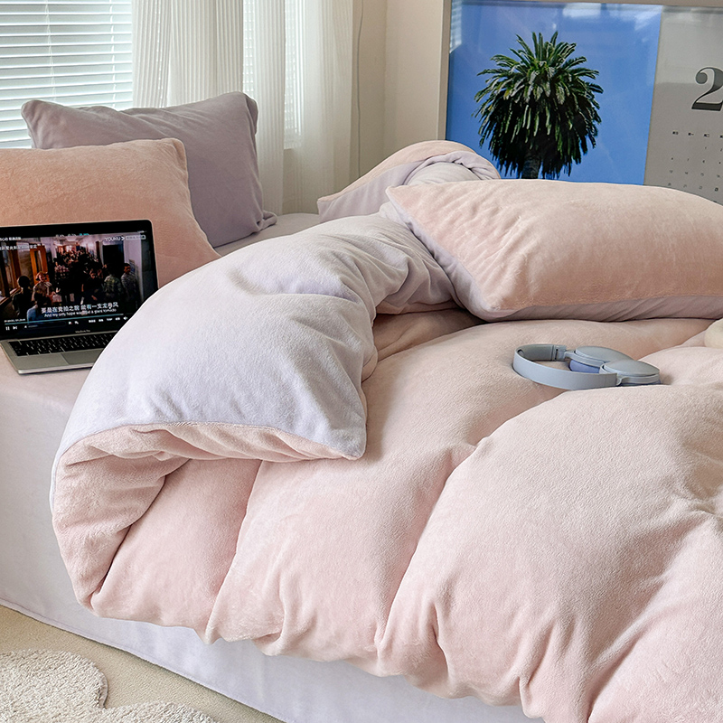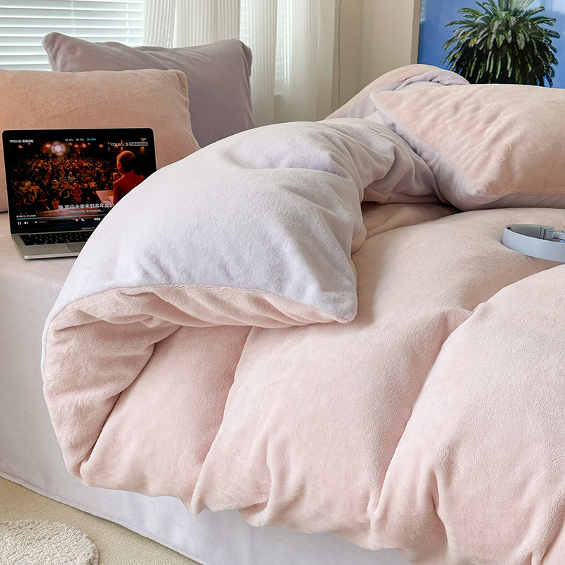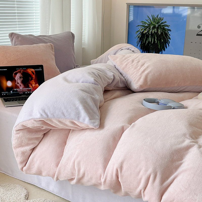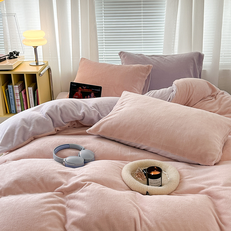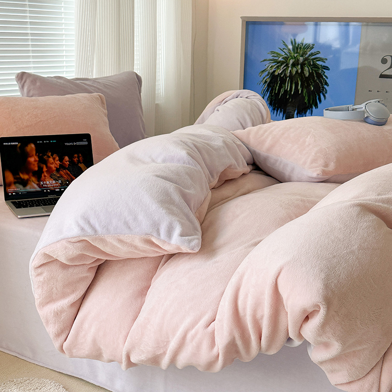 昔可家纺 2023新款奶油纯色系列双拼牛奶绒四件套 奶油粉
