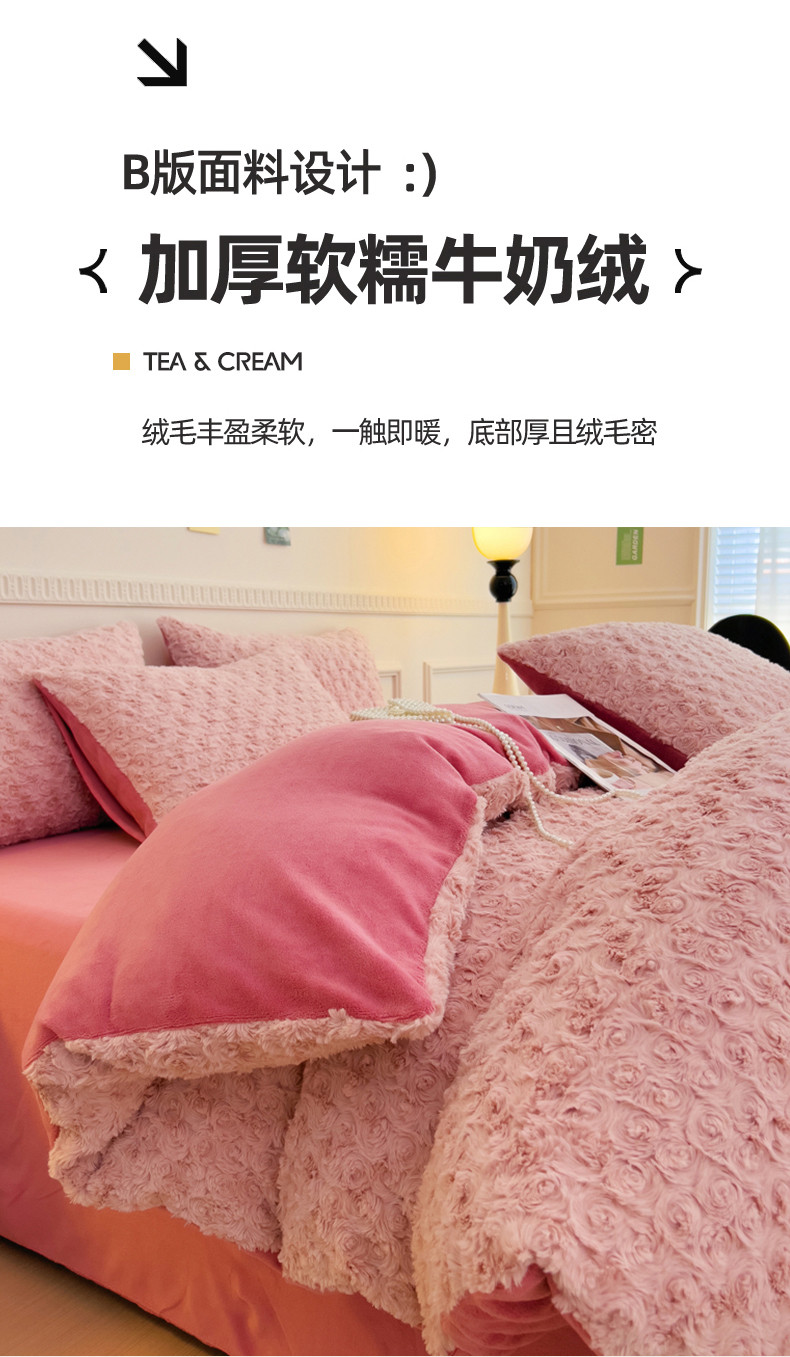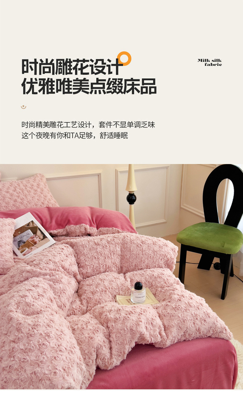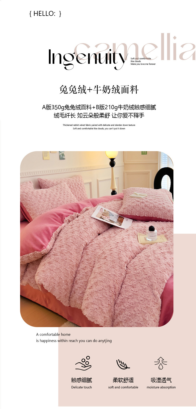 (总)宜家坊 2023新款立体玫瑰兔毛绒四件套
