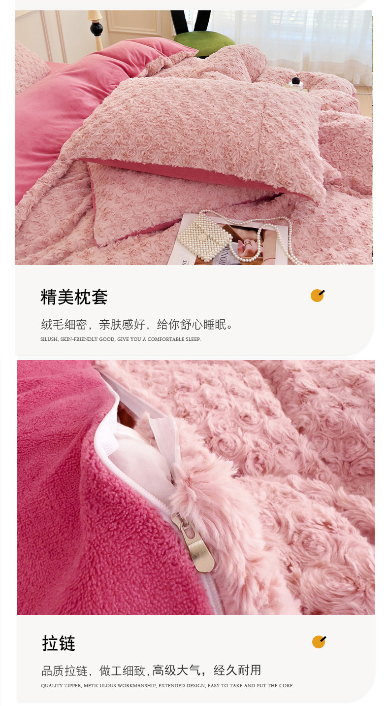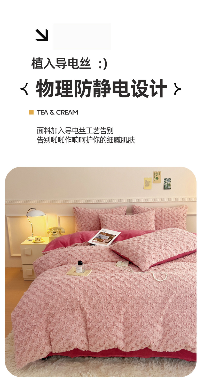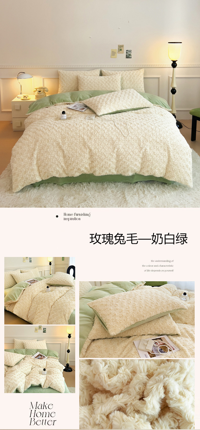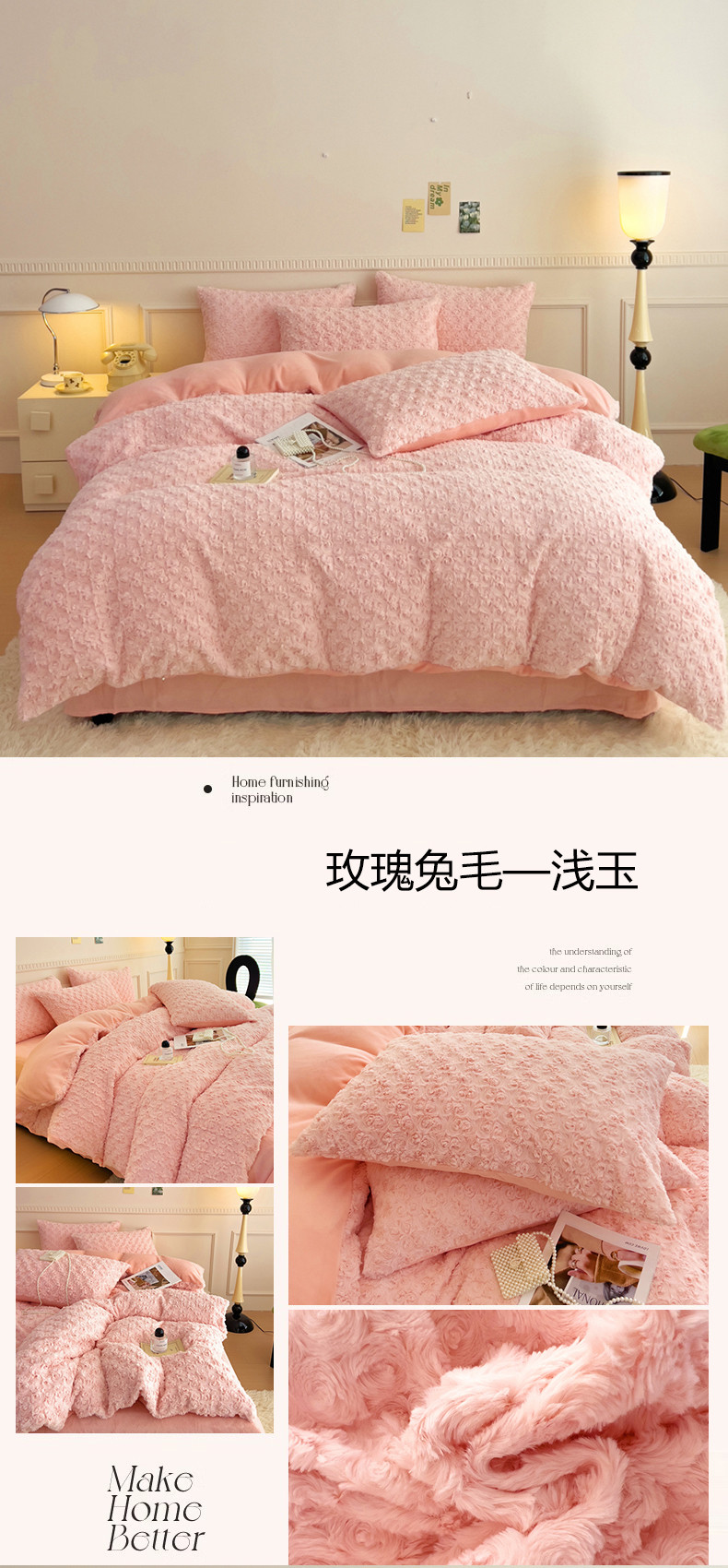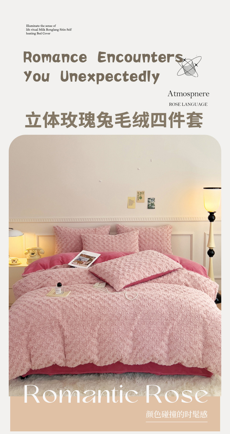 商品名称:(总)宜家坊 2023新款立体玫瑰兔毛绒四件套