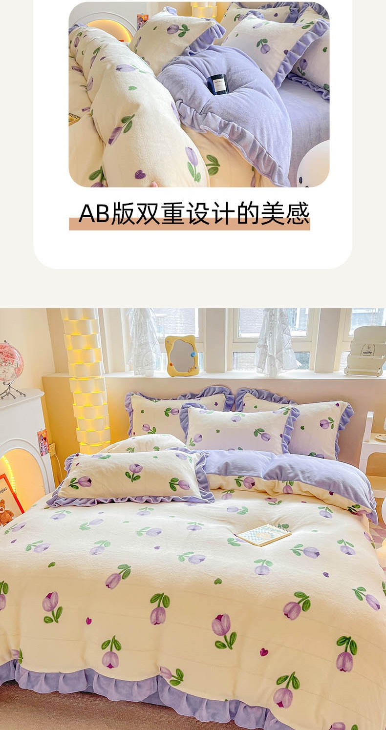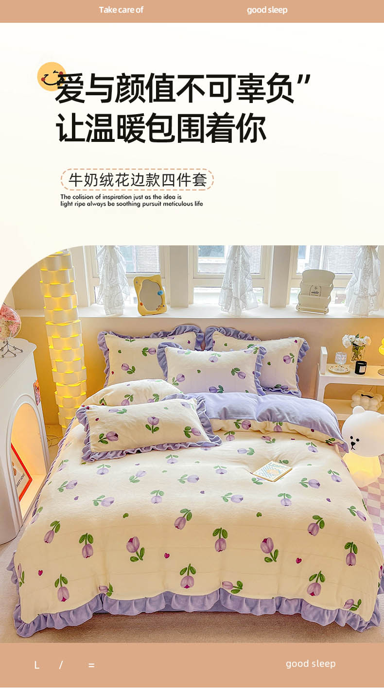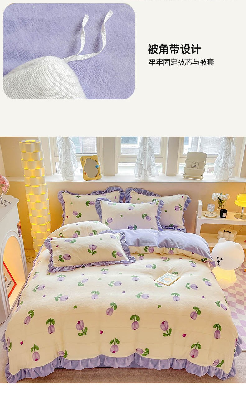 商品名称:米莱 2023新款印花韩版牛奶绒四件套 郁金香紫