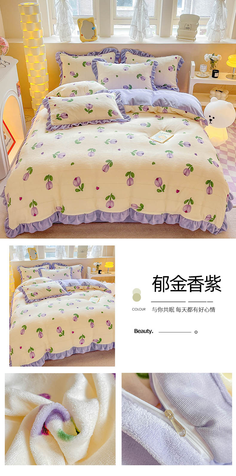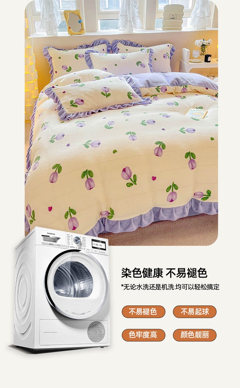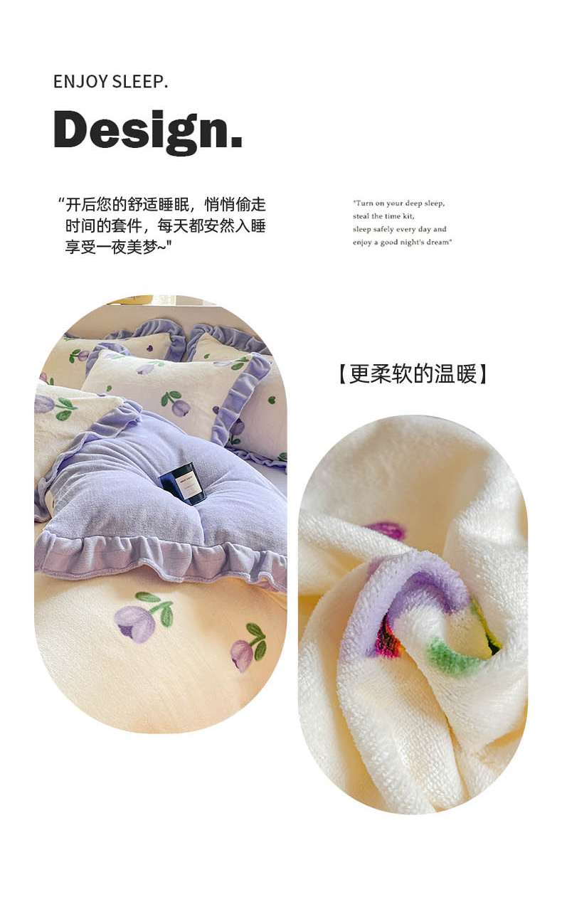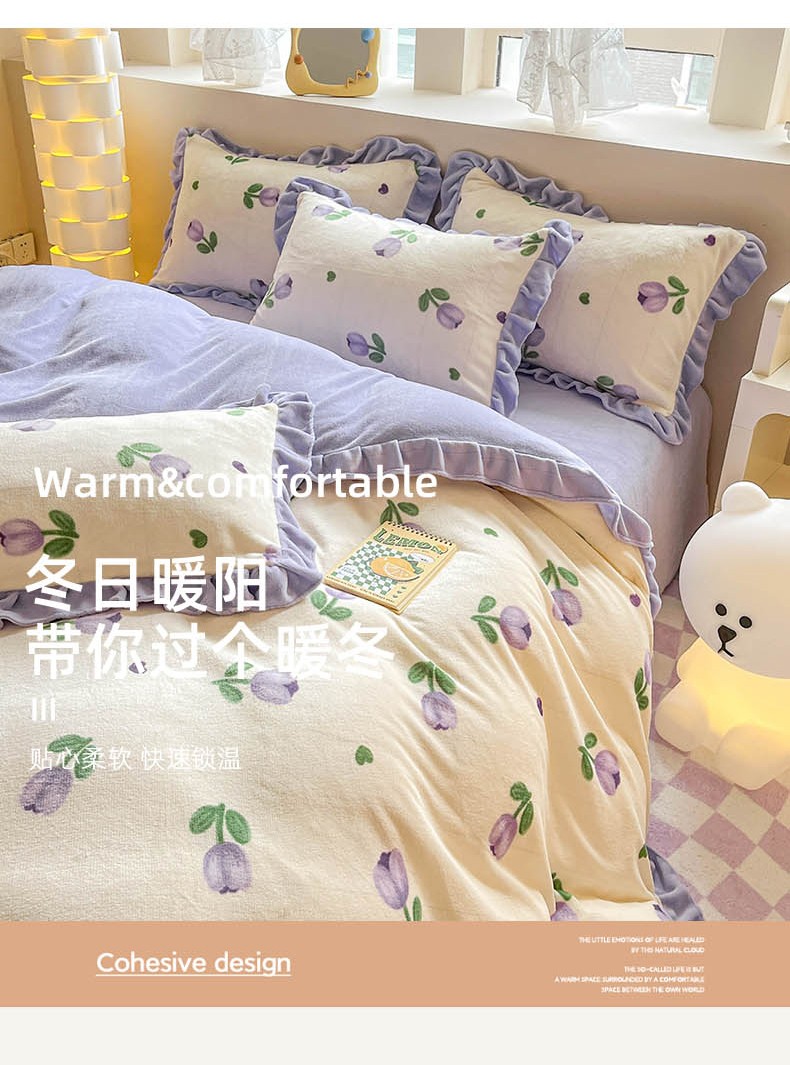 商品名称:米莱 2023新款印花韩版牛奶绒四件套 郁金香紫
