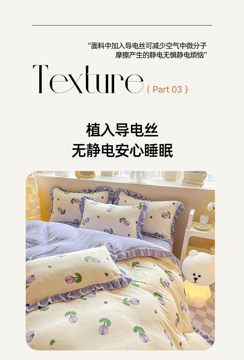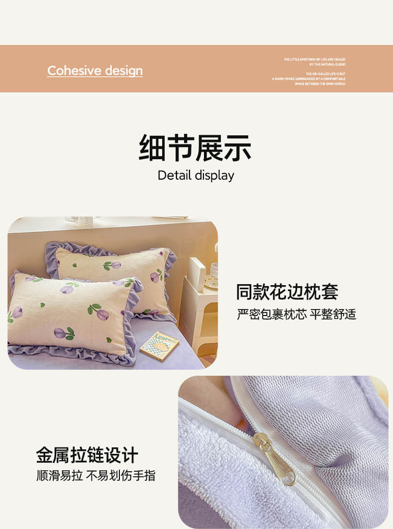 (总)米莱家纺 2025新款兔毛绒花边牛奶绒四件套,彩色圆点,繁花,粉黛,蝴蝶结,咖圆点,可爱兔,可爱熊,蔷薇