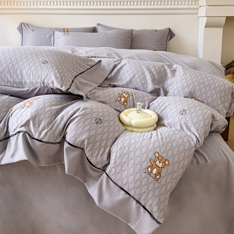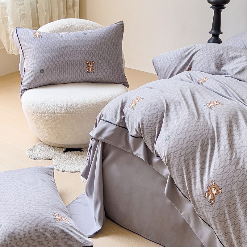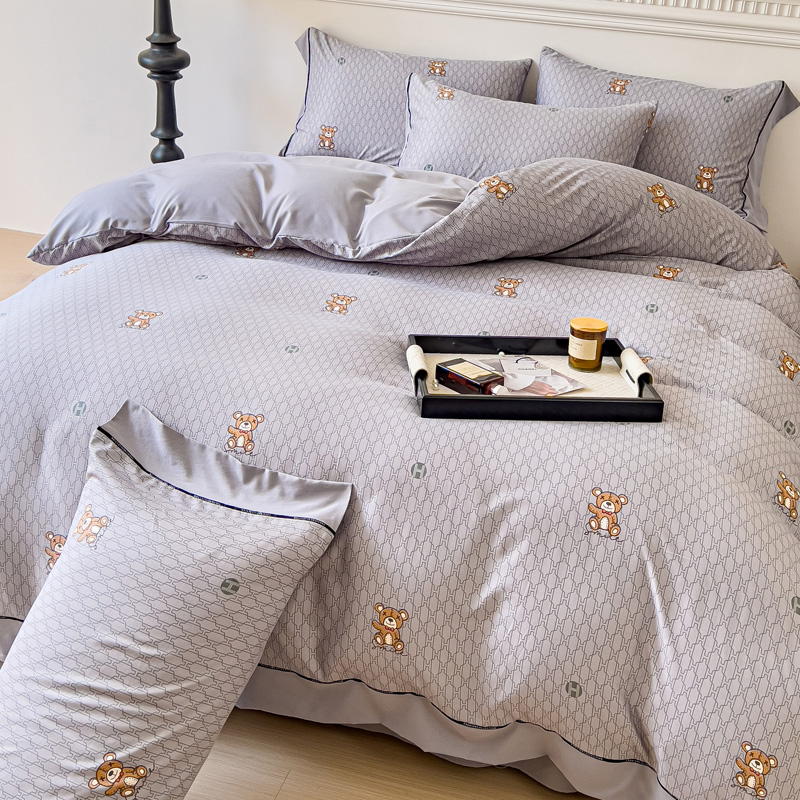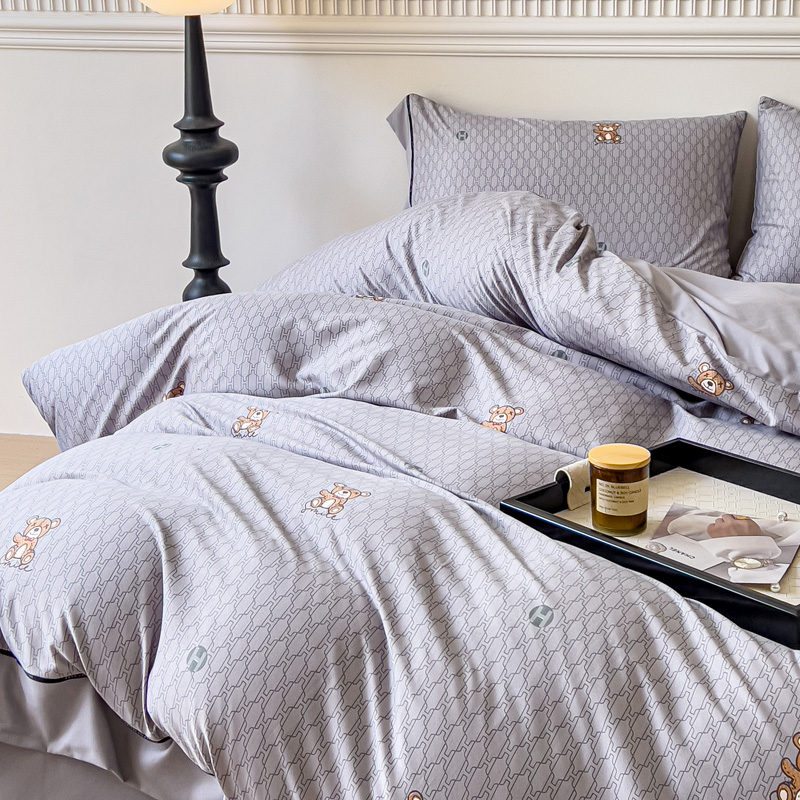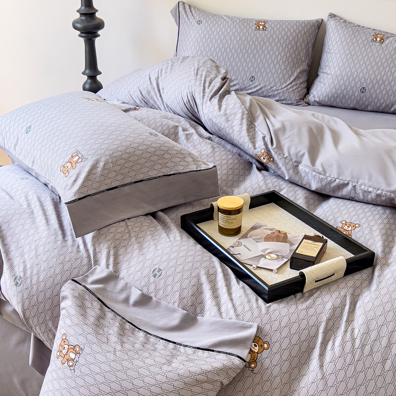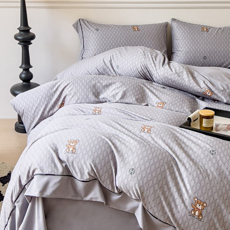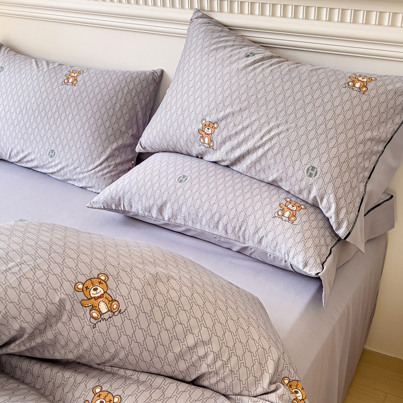 棉生活 2023新款云绒棉印花宽边四件套 大牌熊